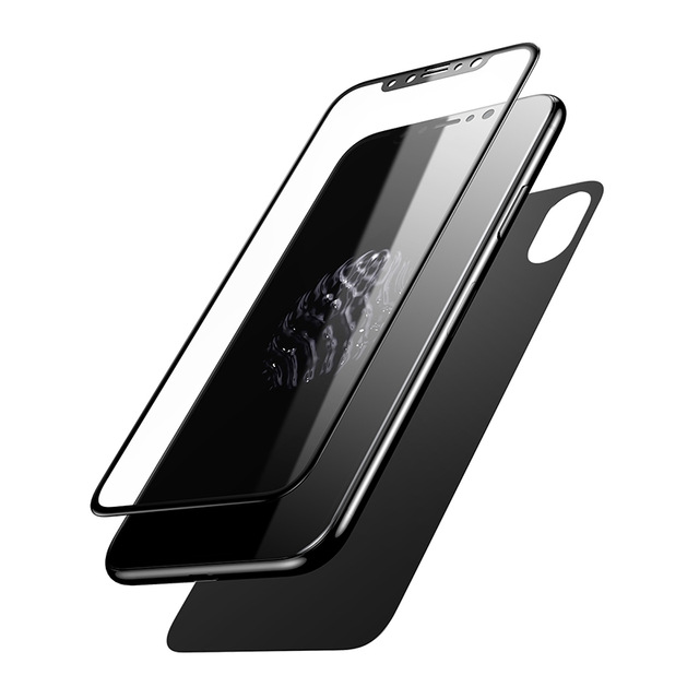 3D Tvrdené ochranné sklo na zadnú + prednú časť iPhonu X – čierna farba. Prekrýva zadnú a prednú časť iPhonu, tým chráni telefón pred poškodením a zachová jeho pôvodný stav. Ochranné sklo disponuje presnými výrezmi pre zadnú kameru a displej. Ochranné sklo sa jednoducho lepí, samozrejmosťou sú pribalené pomôcky na očistenie displeja.