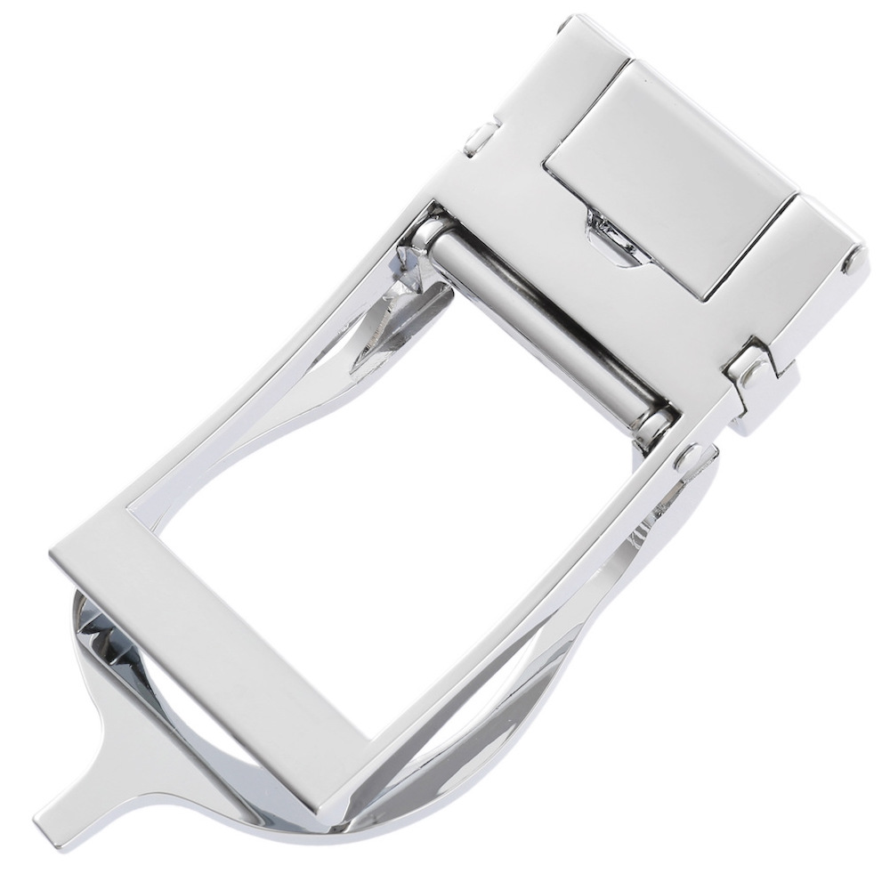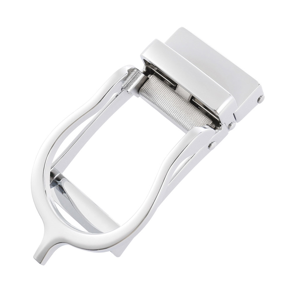 Automatická kovová pracka vyrobená z vysokokvalitnej zliatiny, ktorá zaisťuje bezpečné uchytenie a dlhú životnosť. Pracka si zachová svoj vzhľad a funkciu po celé roky a predstavuje spoľahlivý doplnok ku každému outfitu. Túto pracku môžete použiť jedine ku remeňom bez dierok, ktoré majú zo zadnej strany všitý track systém, ktorý vám umožňuje utiahnúť si opasok s presnosťou na 0,5cm a je nastaviteľnejší ako štandarný klasický opasok s dierkami.