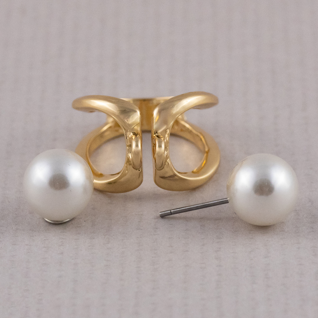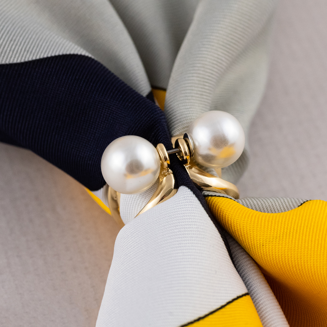 Brošňa na šatku a šál – zlatý uzol s dvomi perlami