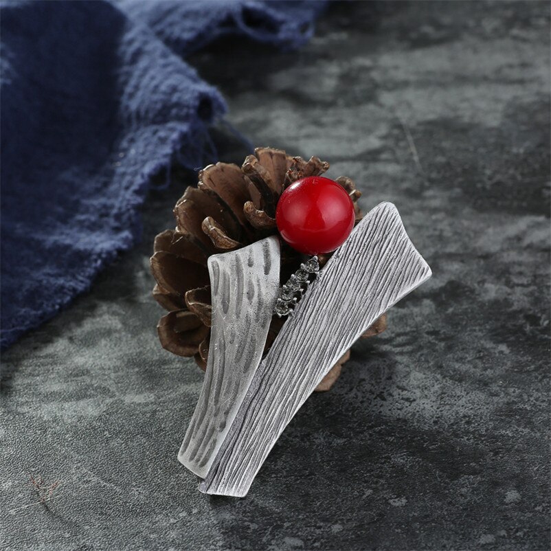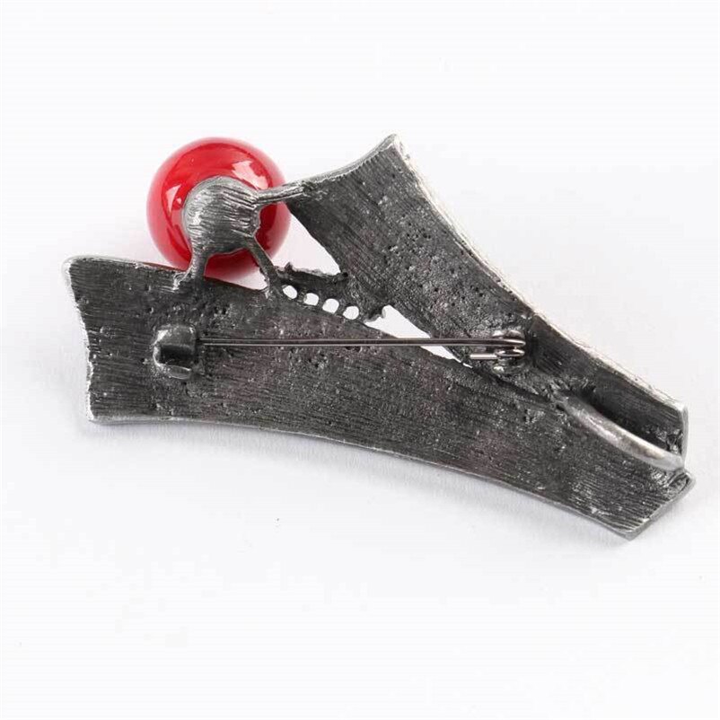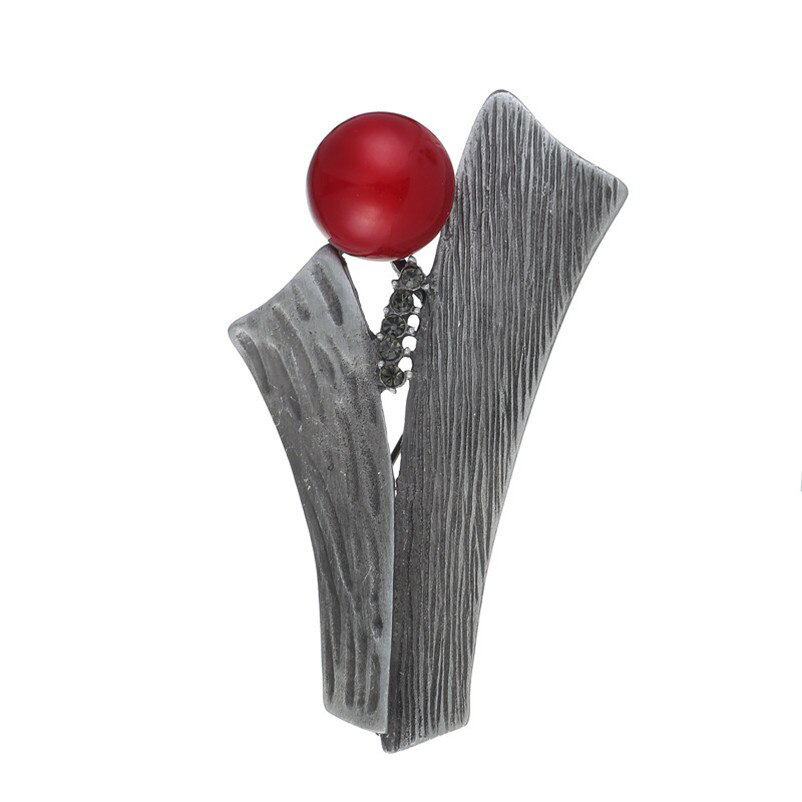 Exkluzívna brošňa s červenou ozdobou a tmavými kryštálikmi. Brošňa je vyrobená z kvalitných materiálov a je dostatočne veľká na to aby vyzdvihla Vašu ženskosť a eleganciu. Brošňa je nádhernou ozdobou pre Vaše oblečenie alebo šatku. Ozdobte si svoje večerné šaty alebo svoju šatku a šál luxusnou ozdobou s ktorou budete neprehliadnuteľná. Brošňu si môžete pripnúť aj na svoje módne doplnky, akými sú napríklad: kabelka, taška a pod. Brošňu si pripnete pomocou špendlíka, ktorý je na zadnej strane ozdoby. Vďaka povrchovej úprave si táto luxusná brošňa zachová dlhotrvajúci lesk a jas.