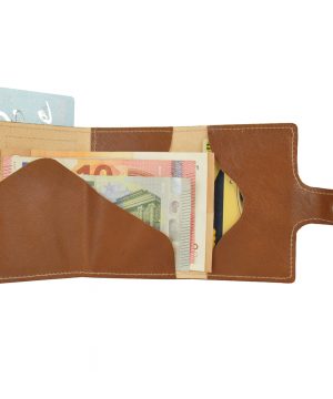 Peňaženka SIMPLE je vyrobená z prírodnej talianskej kože. Obsahuje uzatváranie na gombík. Priečinok na bankovky a 2x priehradku na kartu (občiansky, bonusová karta…).