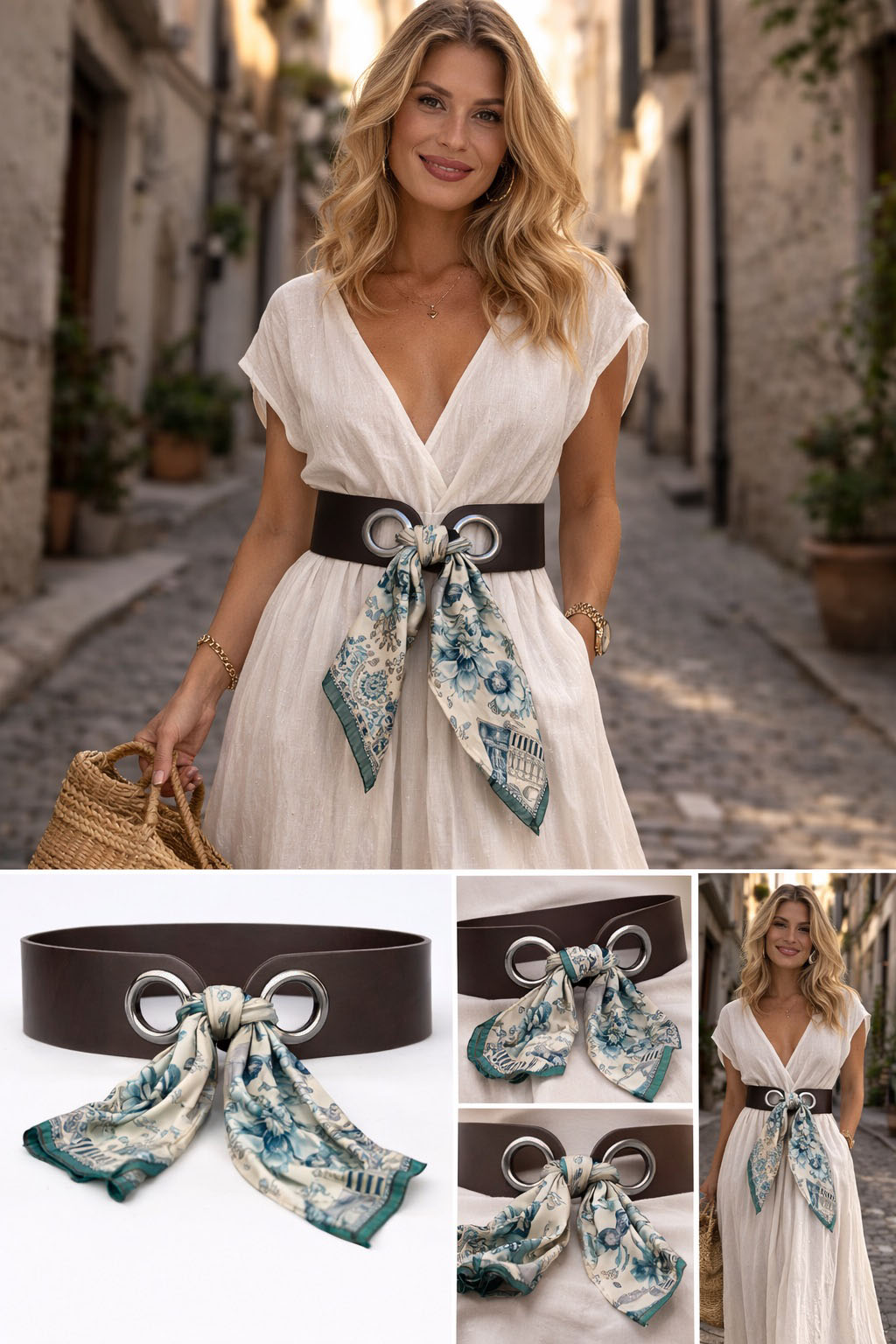 Každý opasok je navrhnutý tak, aby bol nielen štýlový, ale aj praktický. Šatka je prevlečená cez kovové očká a umožňuje variabilné viazanie – od výraznej mašle až po jednoduchý uzol. Vďaka tomu si môžete výsledný vzhľad prispôsobiť podľa príležitosti aj vlastného štýlu. Opasky sa výborne kombinujú so šatami, nohavicami s vysokým pásom, sukňami, overalmi či elegantnými kostýmami.