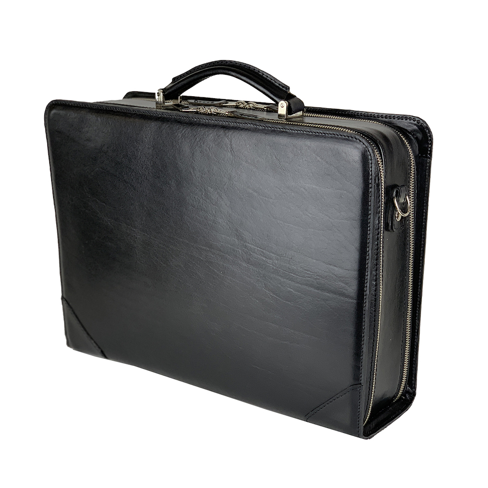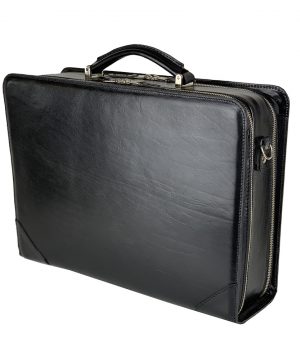 Kožený pracovný kufor č.8156 v čiernej farbe z kvalitnej a odolnej kože. Pracovný kufor je plochá taška slúžiaca ako elegantné púzdro na uloženie rôznych spisov a dokumentov. Kufor obsahuje držadlo, ktoré umožňuje aktovku niesť v ruke. Kožený pracovný kufor je ideálna príručná taška do každého zamestnania. Pracovný kufor si môžete prevesiť cez rameno, alebo ju niesť v ruke. Vyznačuje sa vynikajúcou kvalitou, vysokou odolnosťou a trvácnosťou. Kufor vysokú nosnosť. Disponuje bohatým vnútorným vybavením a umožňuje bezproblémové cestovanie.