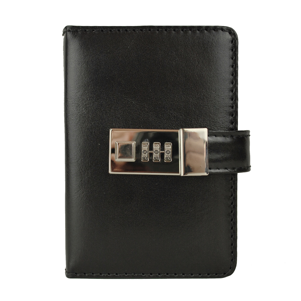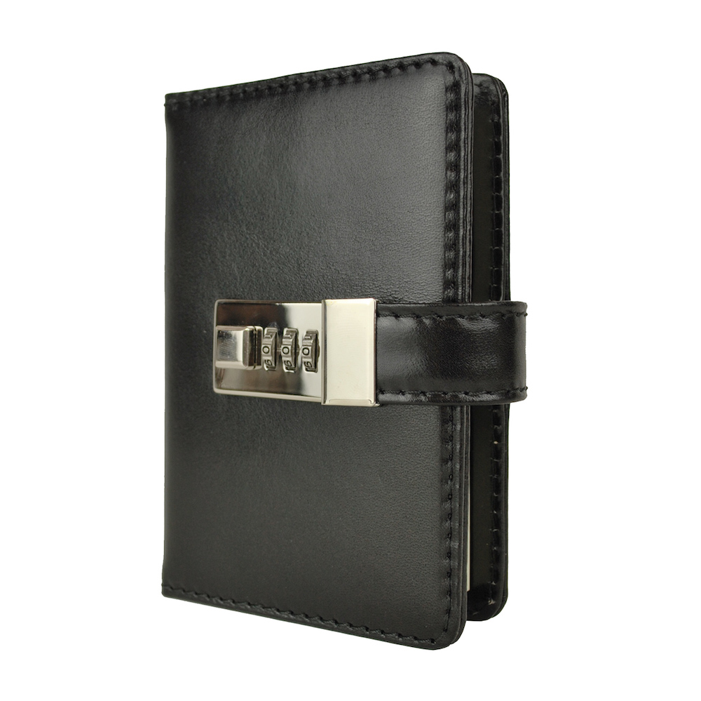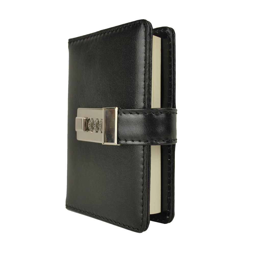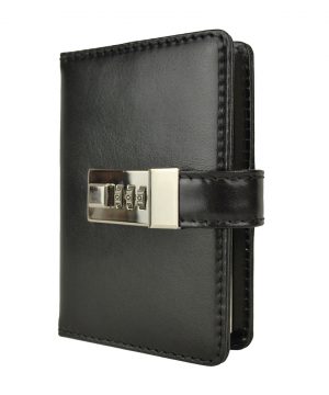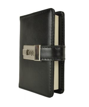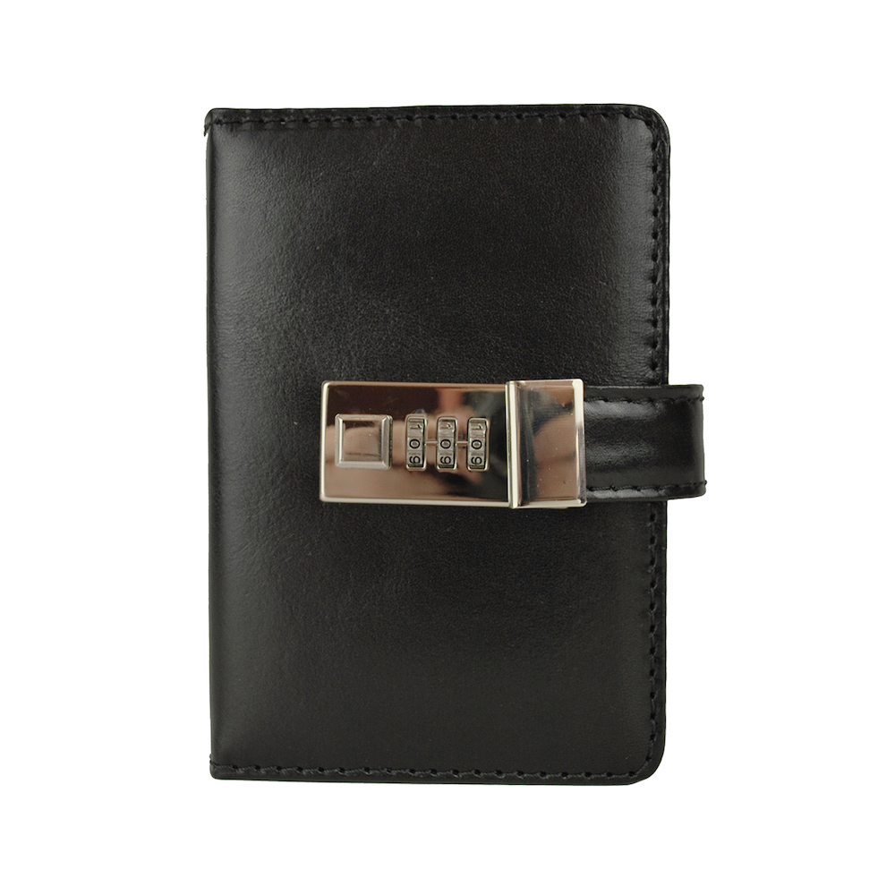 Kožený zápisník MINI z prírodnej kože s číselným zámkom. Obal je vyrobený z pravej prírodnej hovädzej kože. Koža je pevná a drží tvar. Následné je zápisník ošetrený priehľadným lakom, ktorý chráni materiál pred bežným mechanickým poškodením a premočením. Zápisník s prírodnej kože s otváraním na číselný zámok je svojou veľkosťou vhodný do každej pánskej alebo dámskej tašky.