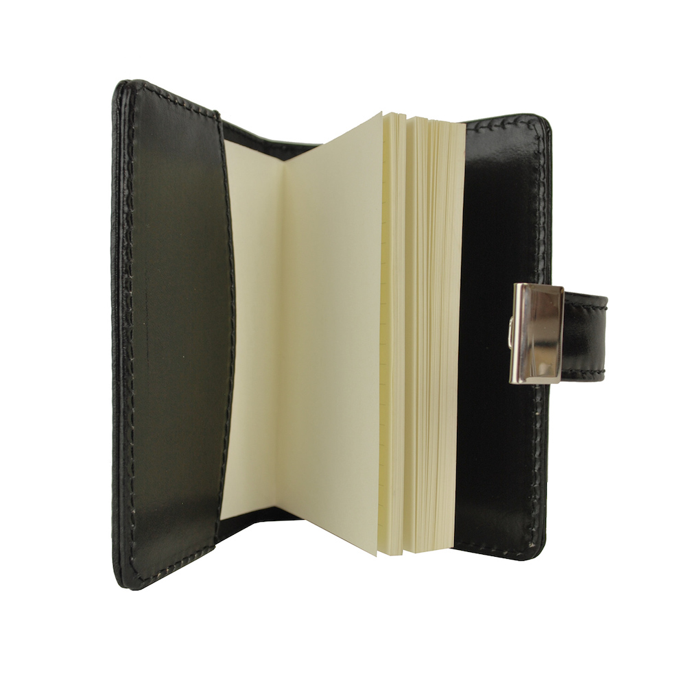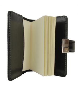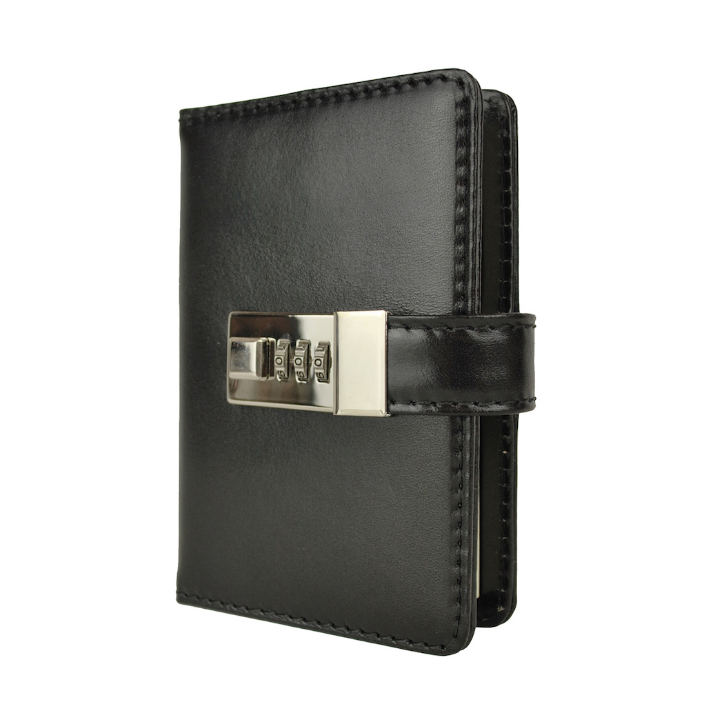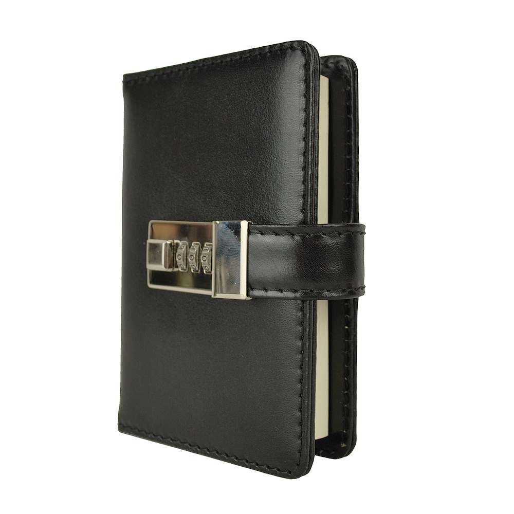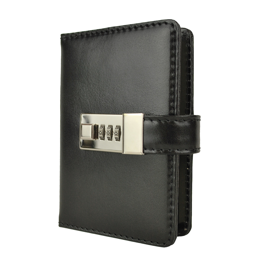 Kožený zápisník MINI z prírodnej kože s číselným zámkom. Obal je vyrobený z pravej prírodnej hovädzej kože. Koža je pevná a drží tvar. Následné je zápisník ošetrený priehľadným lakom, ktorý chráni materiál pred bežným mechanickým poškodením a premočením. Zápisník s prírodnej kože s otváraním na číselný zámok je svojou veľkosťou vhodný do každej pánskej alebo dámskej tašky.