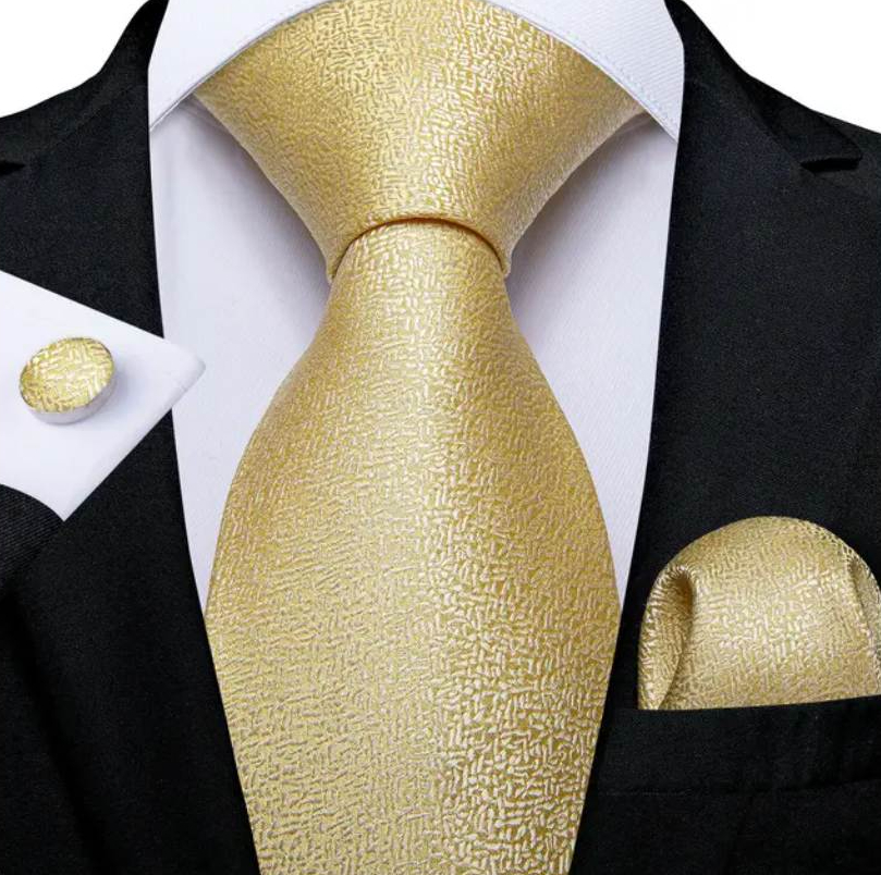 Kravatový set so zlatým reliéfom s vreckovkou a gombíkmi