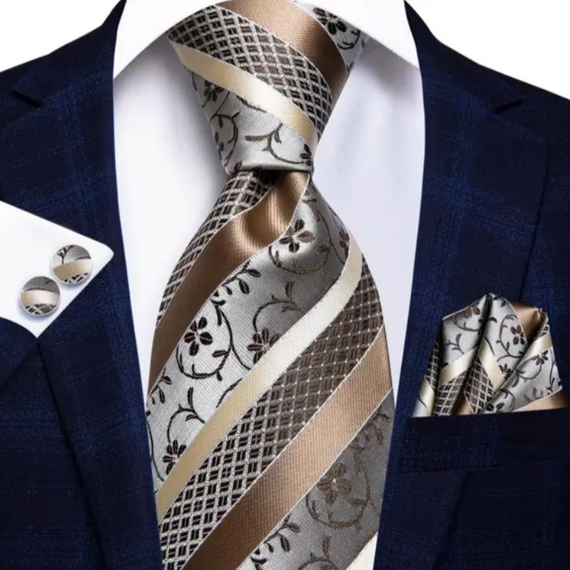 Luxusná kravata je doplnkom Vašej osobnosti. Bude vám slúžiť pri každodennom nosení alebo pri sviatočnej príležitosti. Dodajte svojmu oblečeniu originalitu a štýl. Celý set je zľadený a má jednotný motív a vzor. Vďaka setu je možné dokonale osviežiť pánsky oblek na akúkoľvek udalosť.