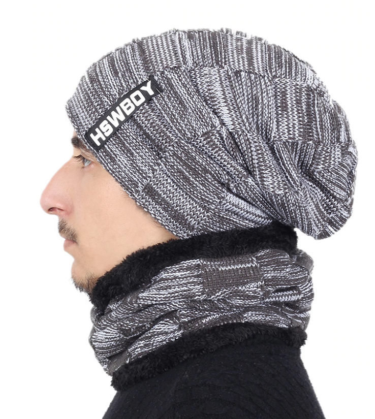 Bavlnená pánska čiapka a bavlnený šál/golier v hnedej farbe