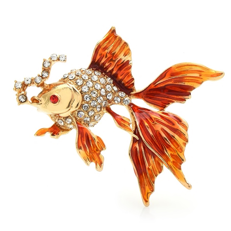 Luxusná brošňa v podobe oranžovej rybičky s kryštálikmi