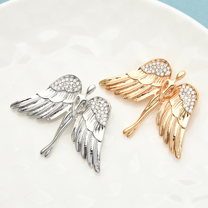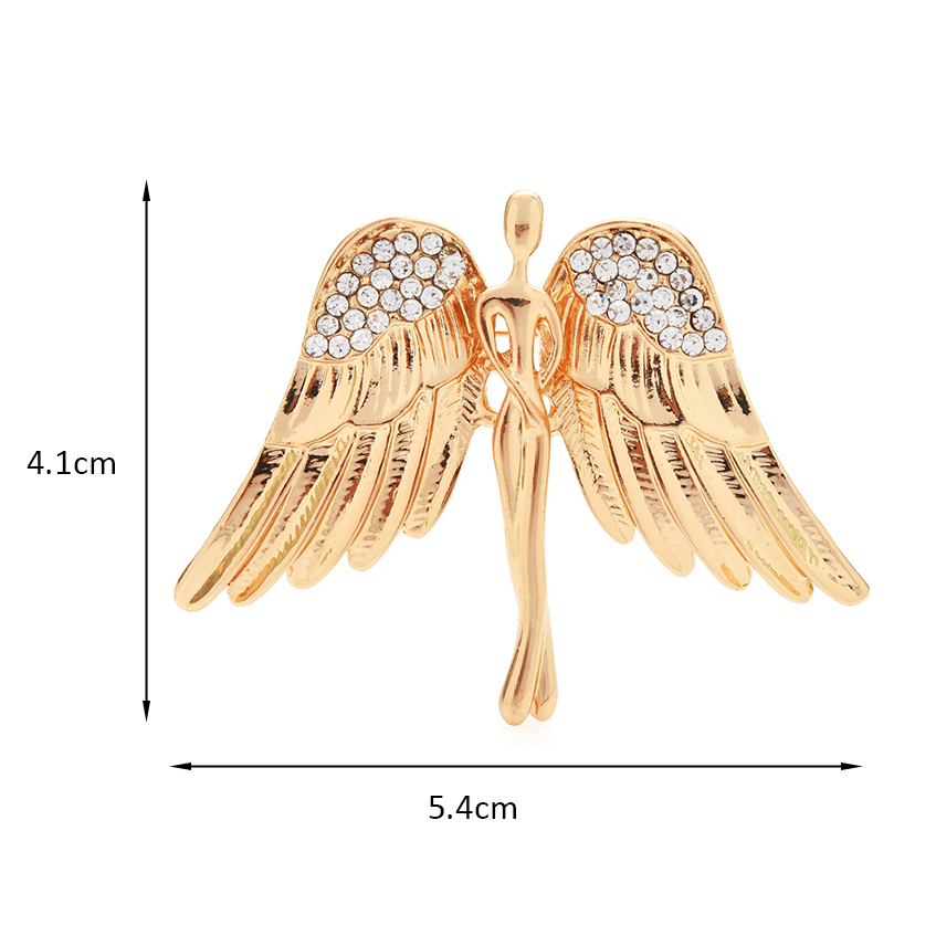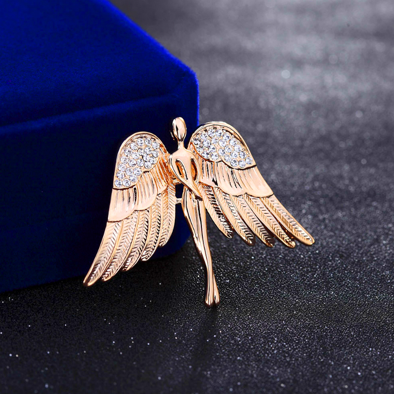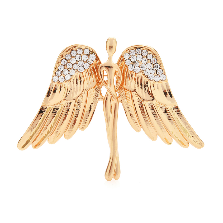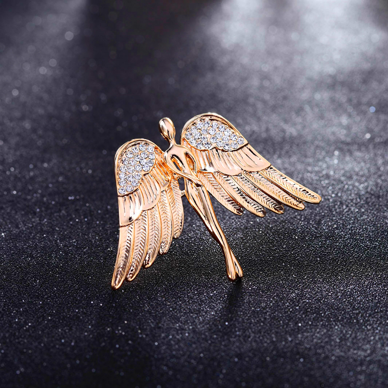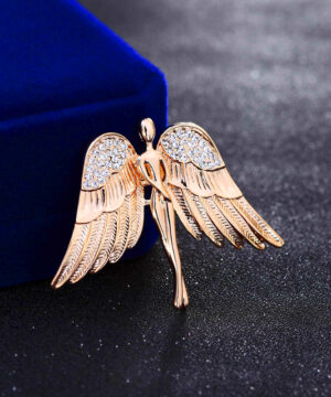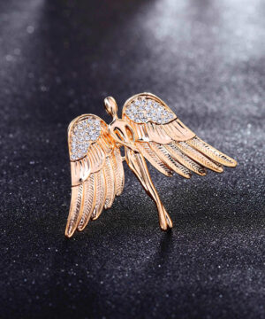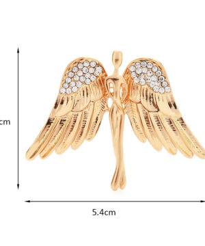 Luxusná brošňa v tvare zlatého anjela. Brošňa je dekorácia na Vaše oblečenie alebo šatku. Ozdobte svoje večerné šaty alebo svoju šatku a šál luxusnou ozdobou s ktorou budete neprehliadnuteľná. Brošňu si môžete pripnúť aj na svoje módne doplnky, akými sú napríklad: kabelka, taška a pod. Brošňu si pripnete pomocou špendlíka, ktorý je na zadnej strane ozdoby.