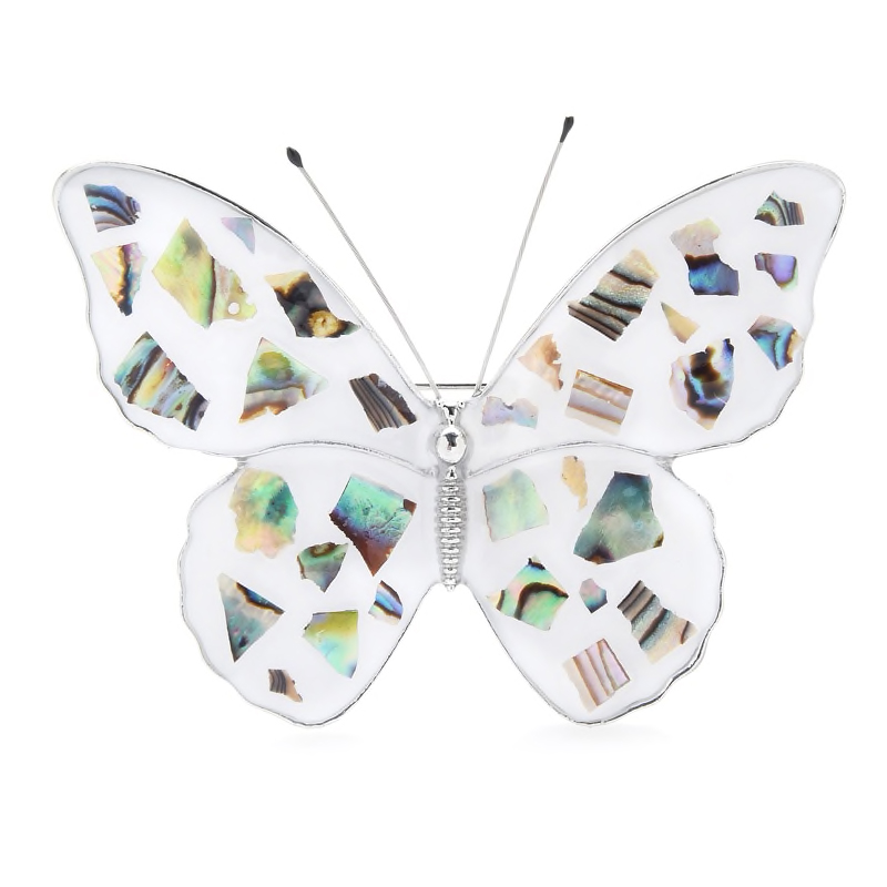 Luxusná brošňa zo smaltu v tvare motýľa v bielej farbe