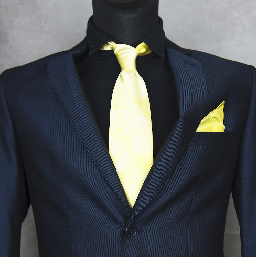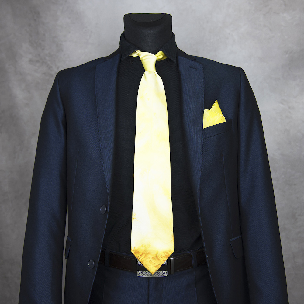Štýlová hodvábna pánska kravata s vreckovkou, ručne vyrobená na Slovensku. Moderný dizajn a pestré farby spracované priamo na Slovensku v meste Liptovský Mikuláš. Sledujúc moderné trendy a dopyt po stále viac štýlových a jedinečných doplnkoch, aj firma VEGALM Liptovský Mikuláš produkuje hodvábne kravaty v tomto smere. Každý jeden kus oplýva jedinečnosťou vďaka ktorej sa stane aj zo všedného business outfitu niečo štýlové, luxusné a moderné.