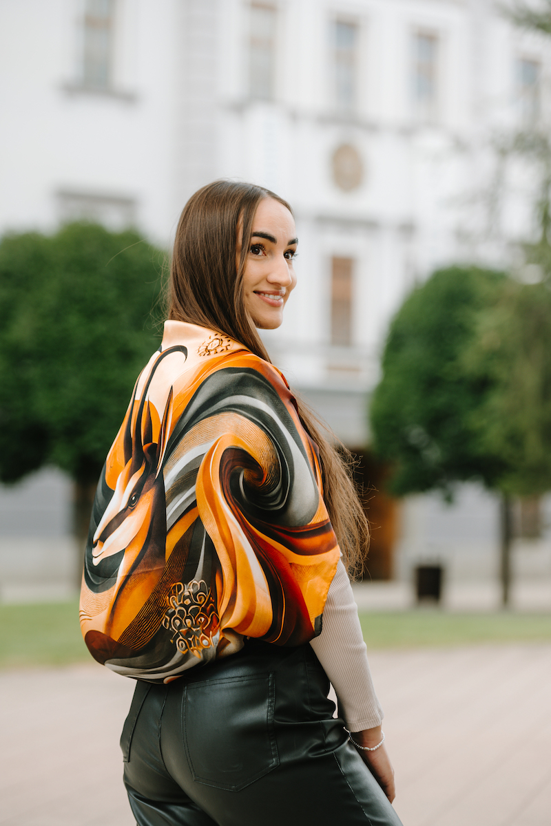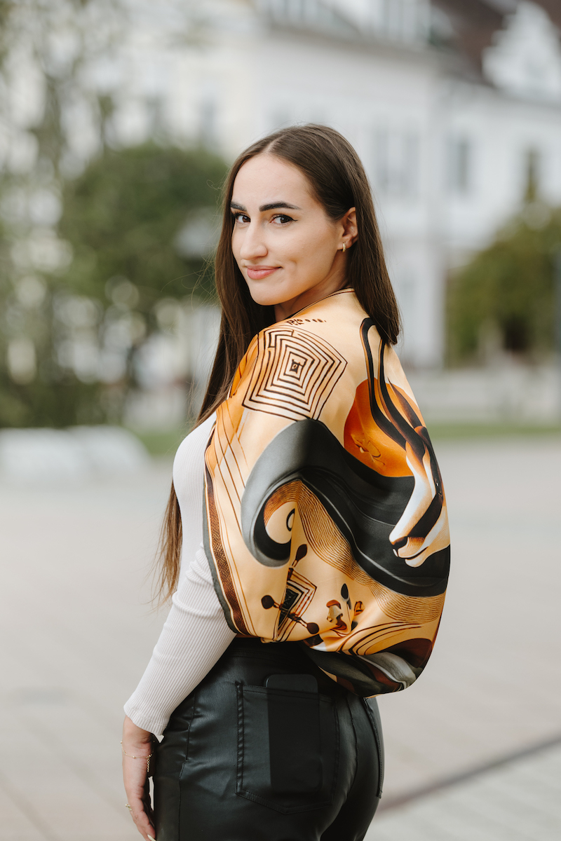 -klasická šatka okolo krku – vďaka vlastnostiam hodvábu je vhodné nosenie celoročne