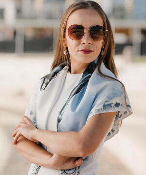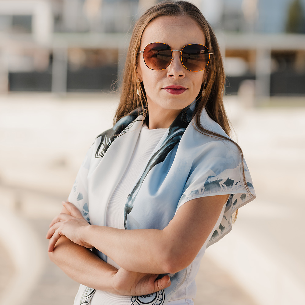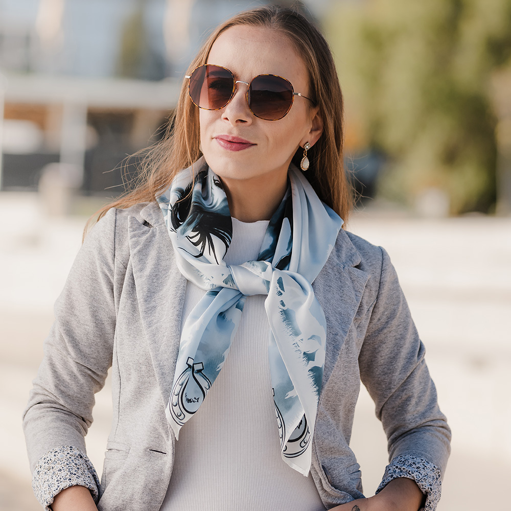 -klasická šatka okolo krku – vďaka vlastnostiam hodvábu je vhodné nosenie celoročne