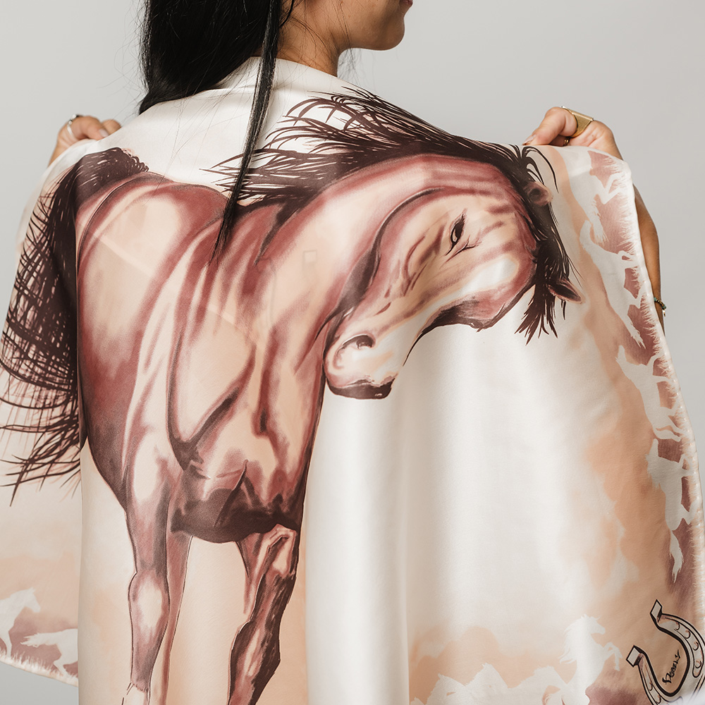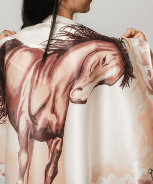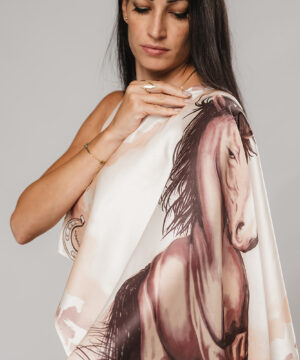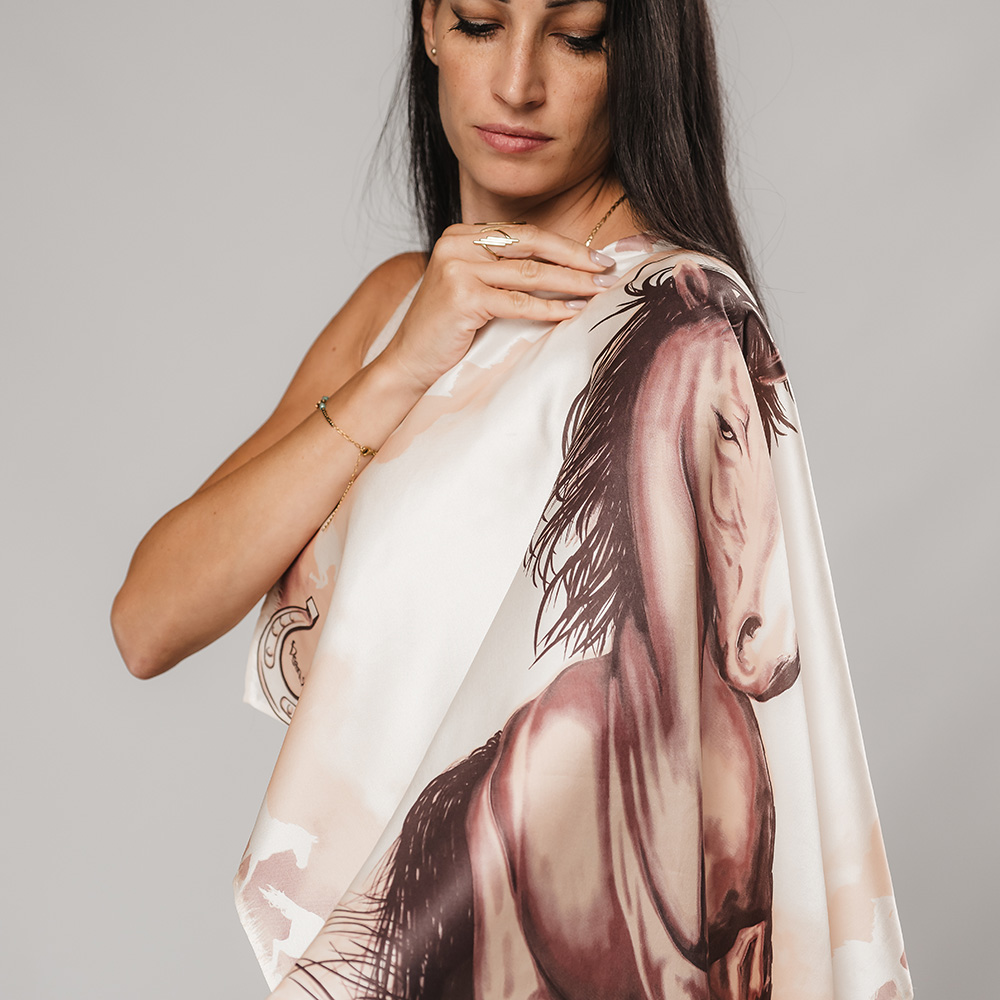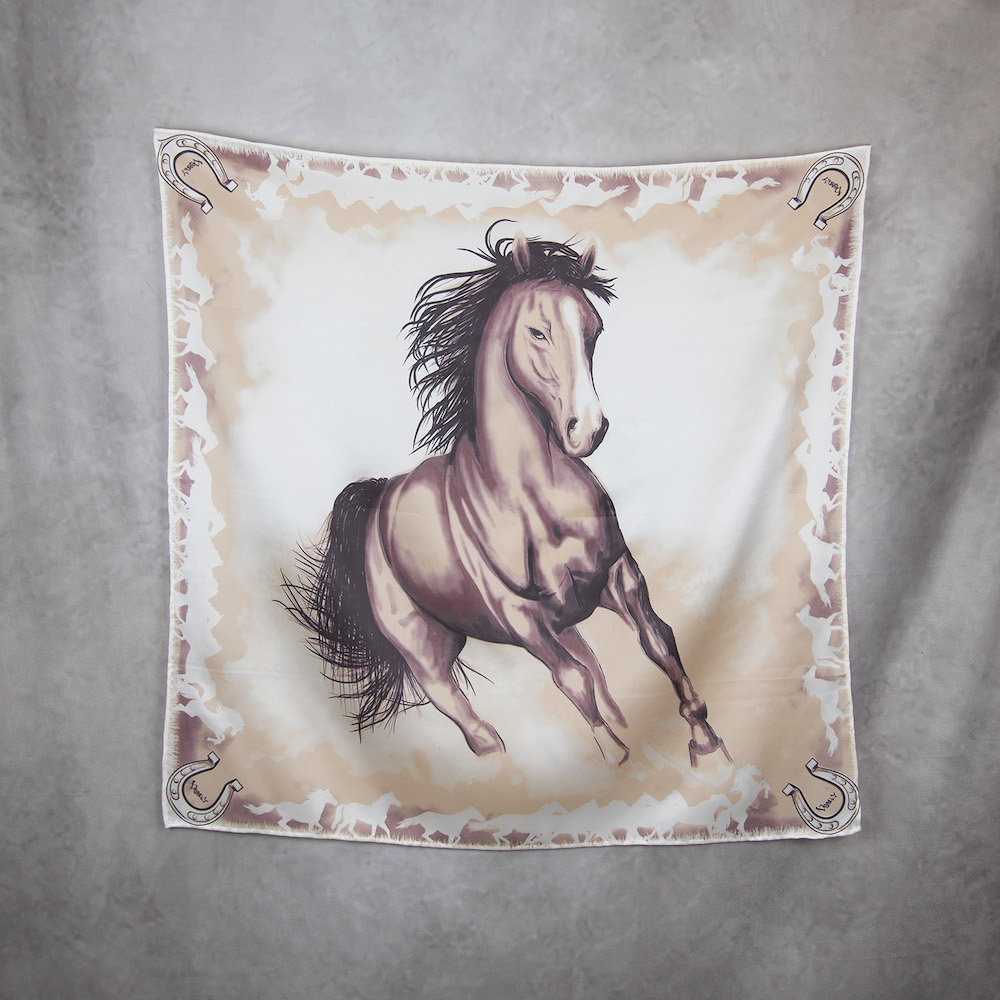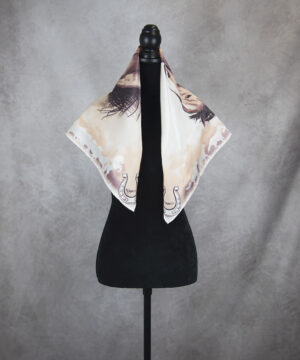 Luxusná hodvábna šatka Kôň – sépia, Vyrobené na Slovensku, 90 x 90cm