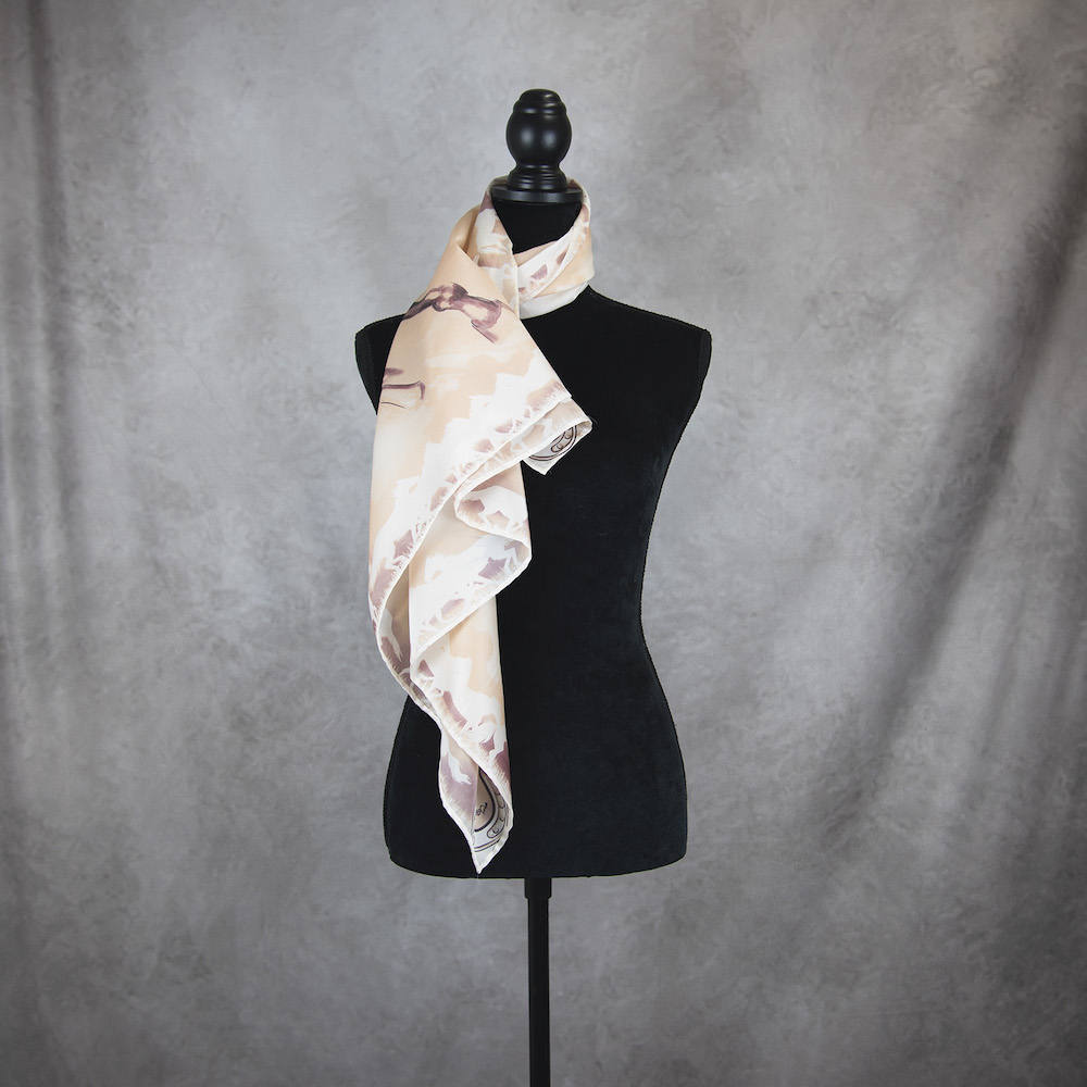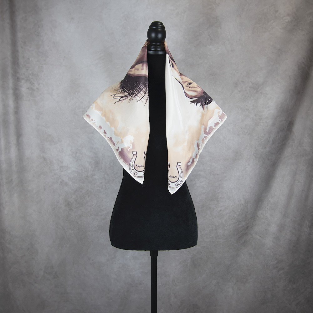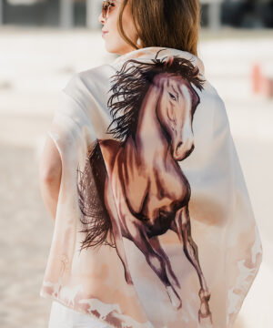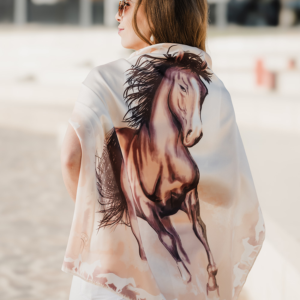 Luxusná hodvábna šatka Kôň – sépia, Vyrobené na Slovensku, 90 x 90cm