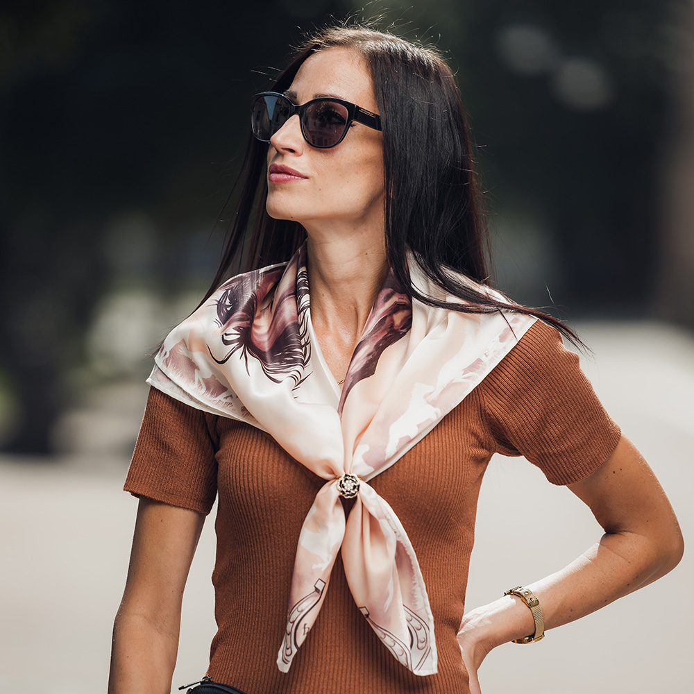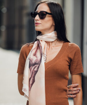 -klasická šatka okolo krku – vďaka vlastnostiam hodvábu je vhodné nosenie celoročne