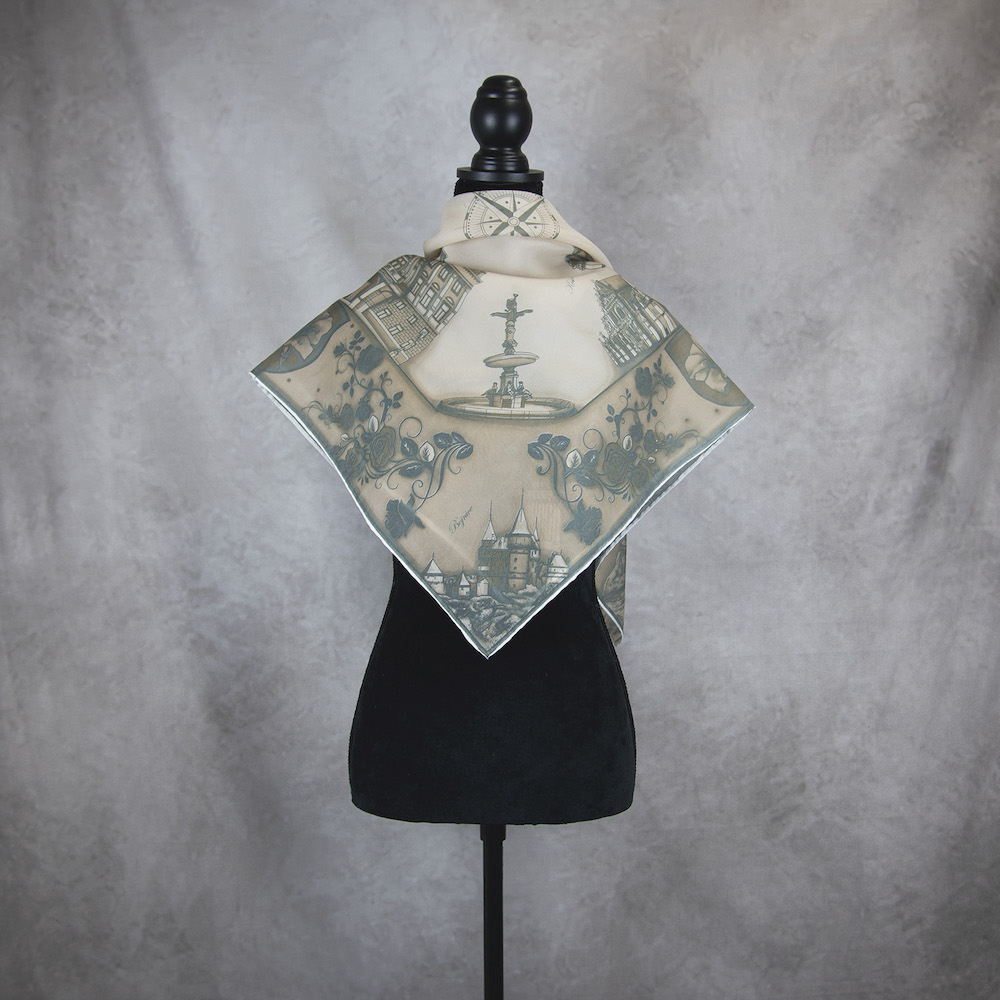 Postup tvorby: Motív na šatke je grafikom po dobu cca 3-4 týždne tvorený ručne a následne prekreslený do digitálnej podoby tak, aby sa dal použiť na sieťotlačovú techniku. Sieťotlač a špeciálne farby na hodváb umožňujú šatke plno-farebnosť z oboch strán a nie ako je to pri digitálnej potlači jednu stranu šatky bledú. Následne sú všetky kroky vrátane potlače všetkých farieb prevádzané ručne. Farba je zafixovaná, šatka vypratá a ošetrená fixátorom farieb, kraje sú ručne zrolované a ručne prešité a následne je celá šatka vyžehlená.