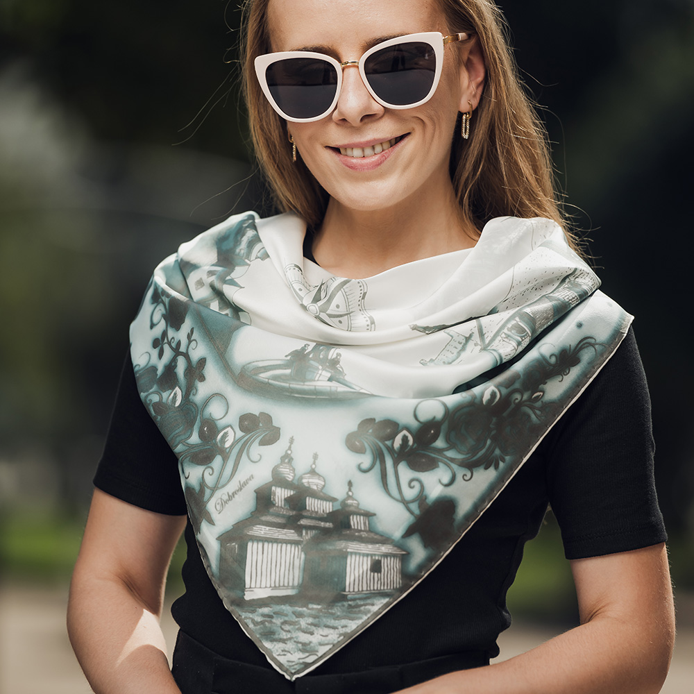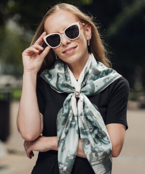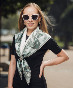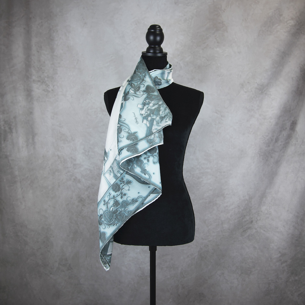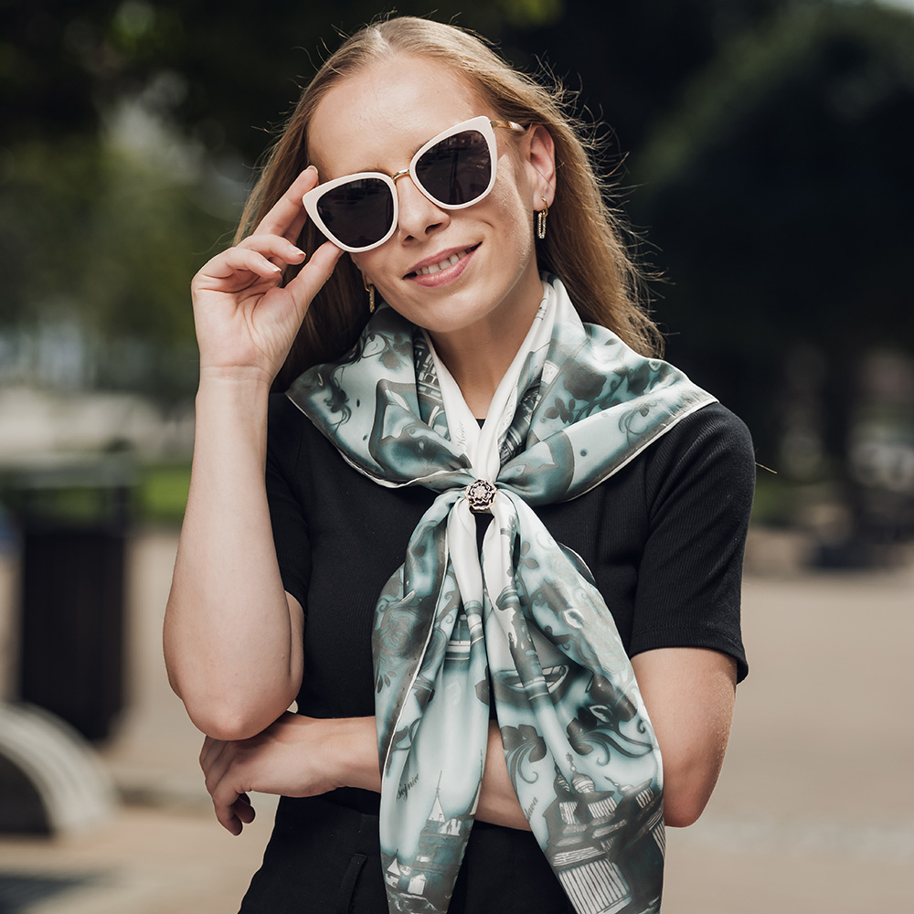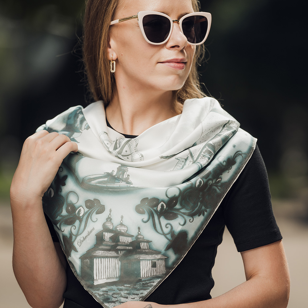 -klasická šatka okolo krku – vďaka vlastnostiam hodvábu je vhodné nosenie celoročne