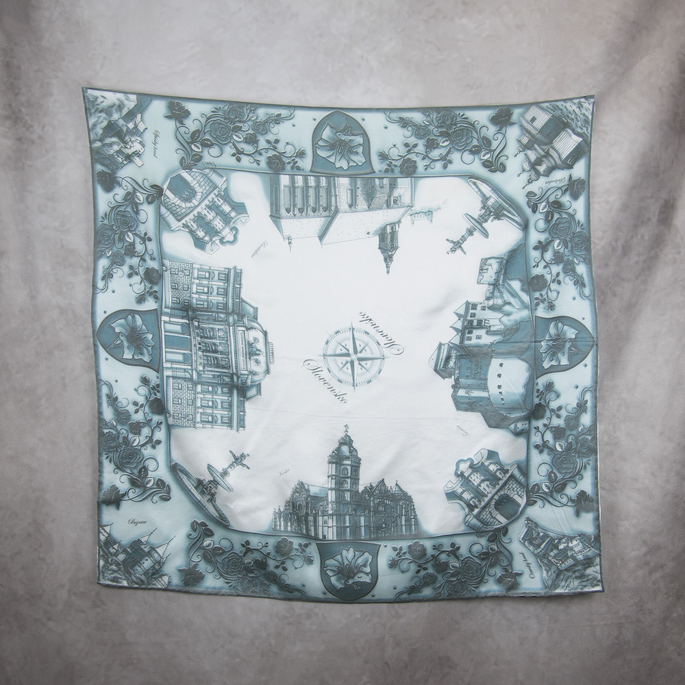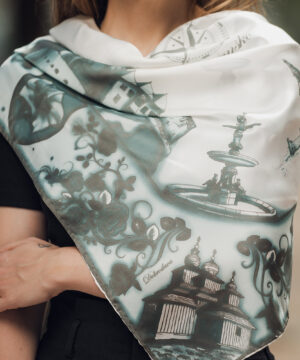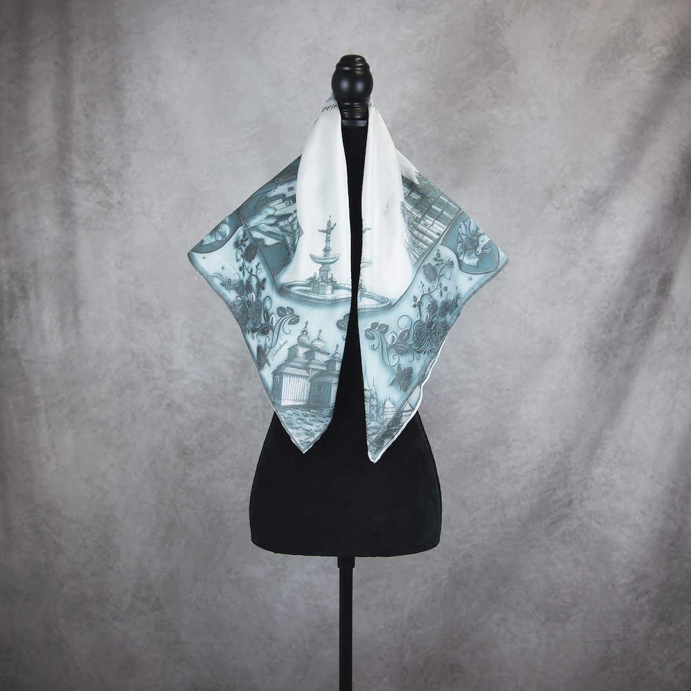 Postup tvorby: Motív na šatke je grafikom po dobu cca 3-4 týždne tvorený ručne a následne prekreslený do digitálnej podoby tak, aby sa dal použiť na sieťotlačovú techniku. Sieťotlač a špeciálne farby na hodváb umožňujú šatke plno-farebnosť z oboch strán a nie ako je to pri digitálnej potlači jednu stranu šatky bledú. Následne sú všetky kroky vrátane potlače všetkých farieb prevádzané ručne. Farba je zafixovaná, šatka vypratá a ošetrená fixátorom farieb, kraje sú ručne zrolované a ručne prešité a následne je celá šatka vyžehlená.