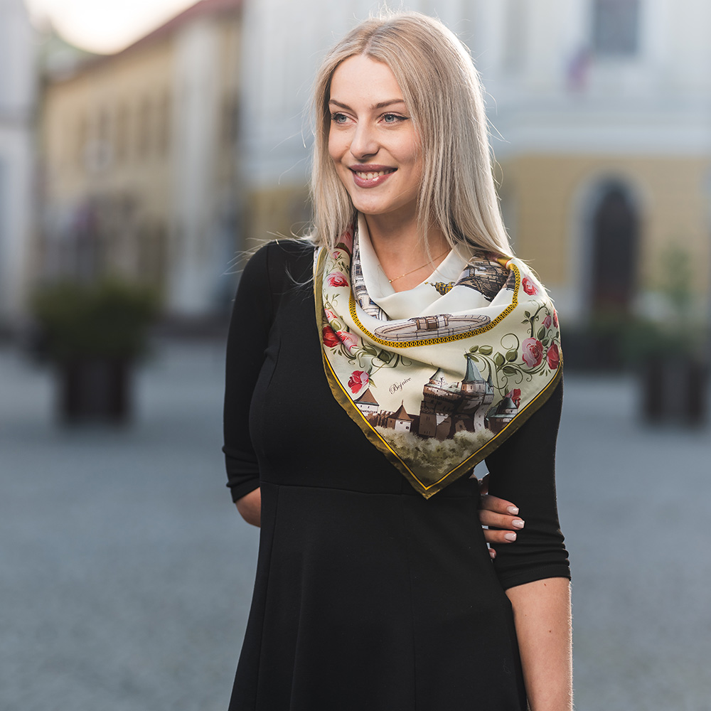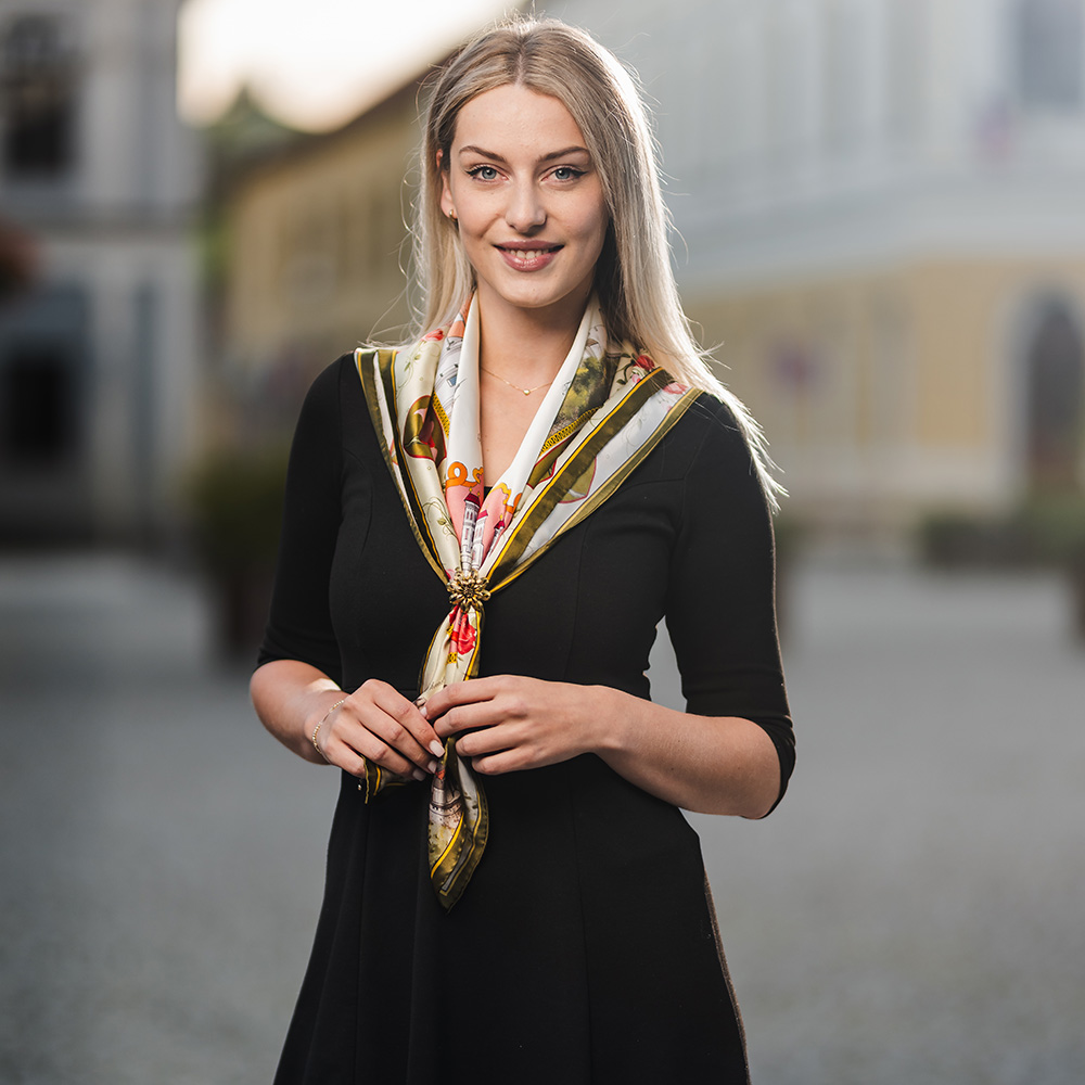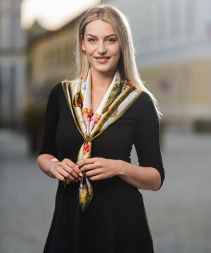 -klasická šatka okolo krku – vďaka vlastnostiam hodvábu je vhodné nosenie celoročne