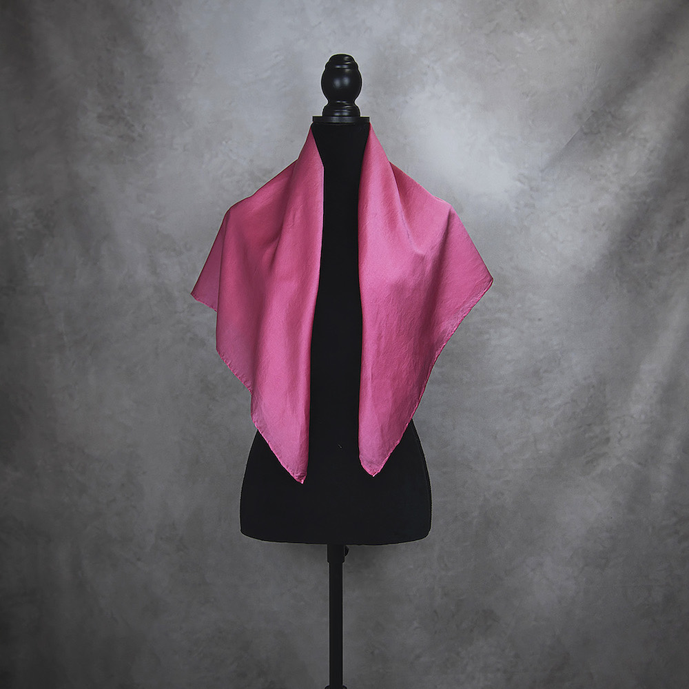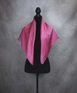 Postup tvorby: Šatka je farbená špeciálnym spôsobom, 100% prírodným pigmentom určeným priamo na farbenie hodvábu. Farba je zafixovaná, šatka vypratá a ošetrená fixátorom farieb. Okraje sú ručne zrolované a ručne prešité a následne je celá šatka vyžehlená.