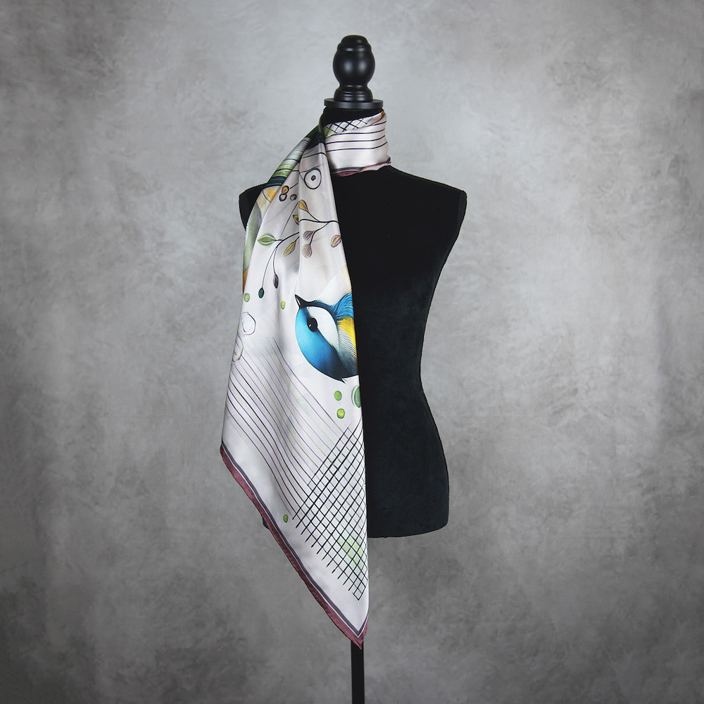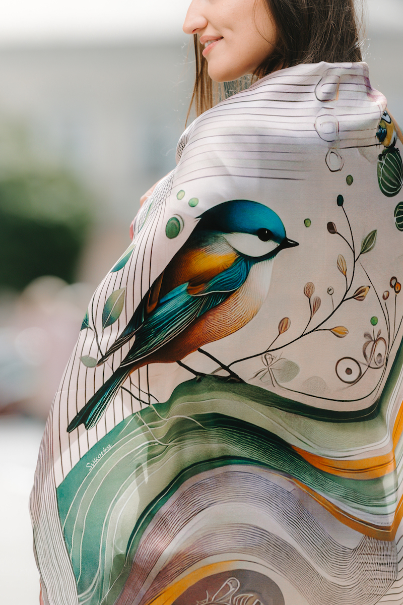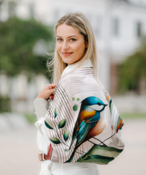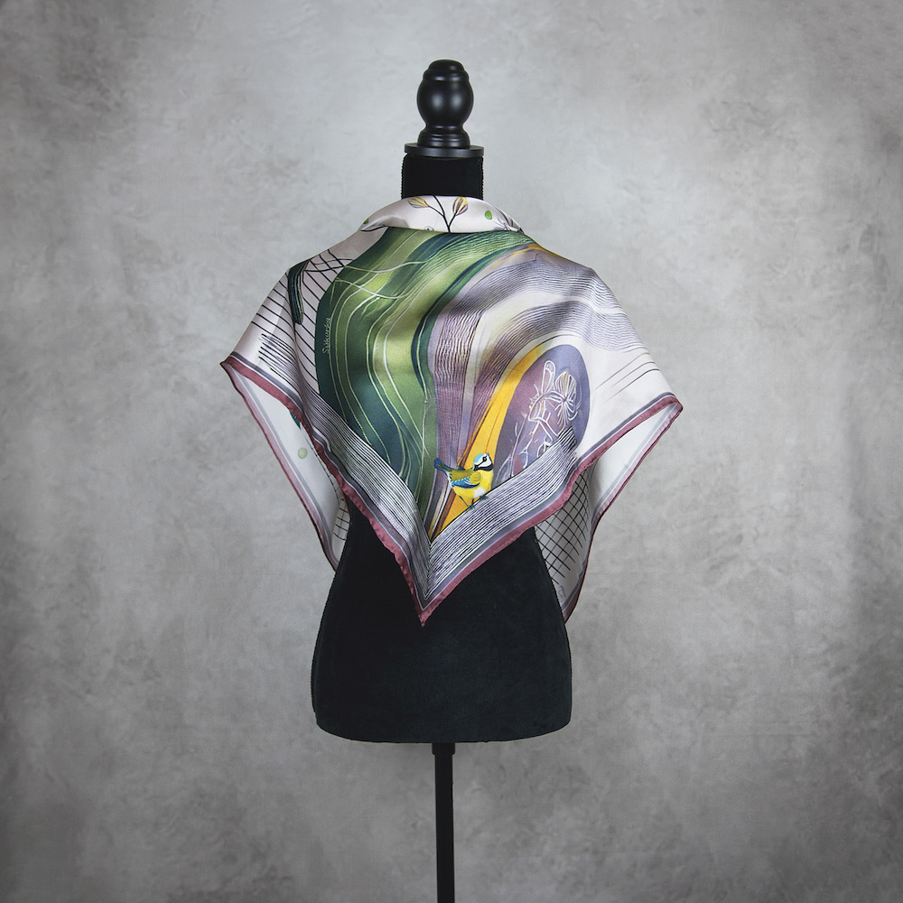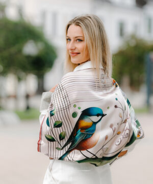 Luxusná hodvábna šatka – SÝKORKA