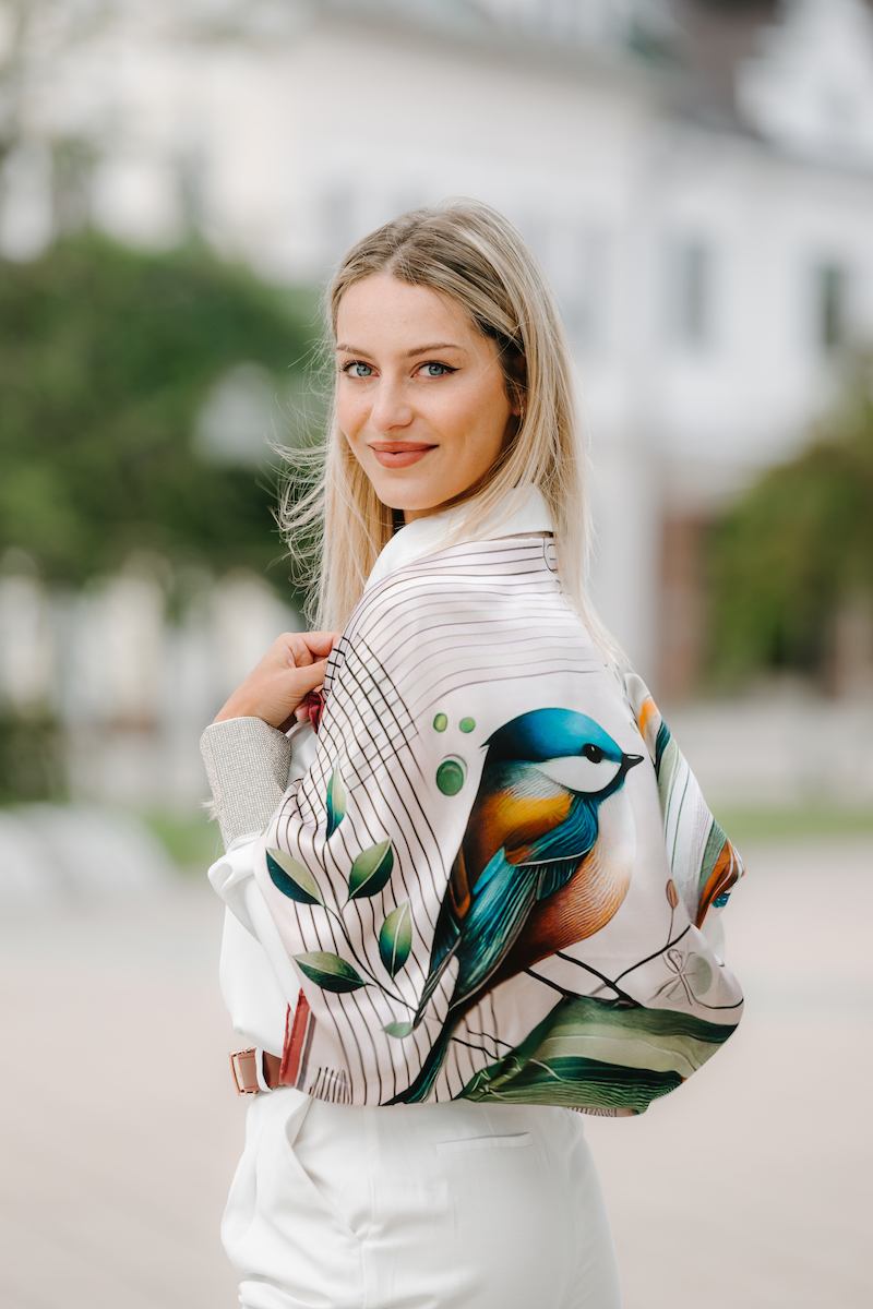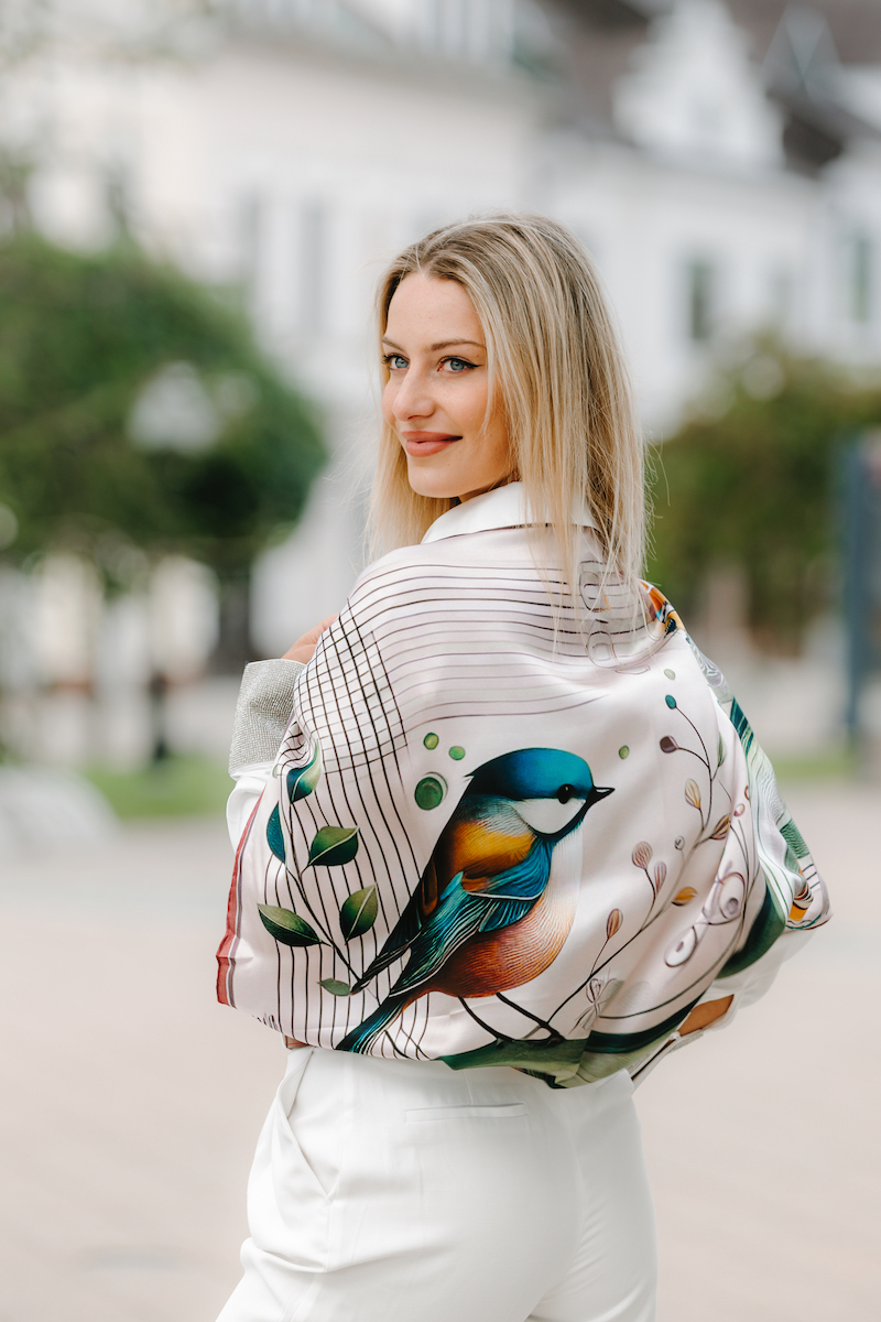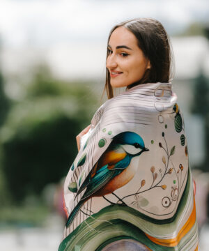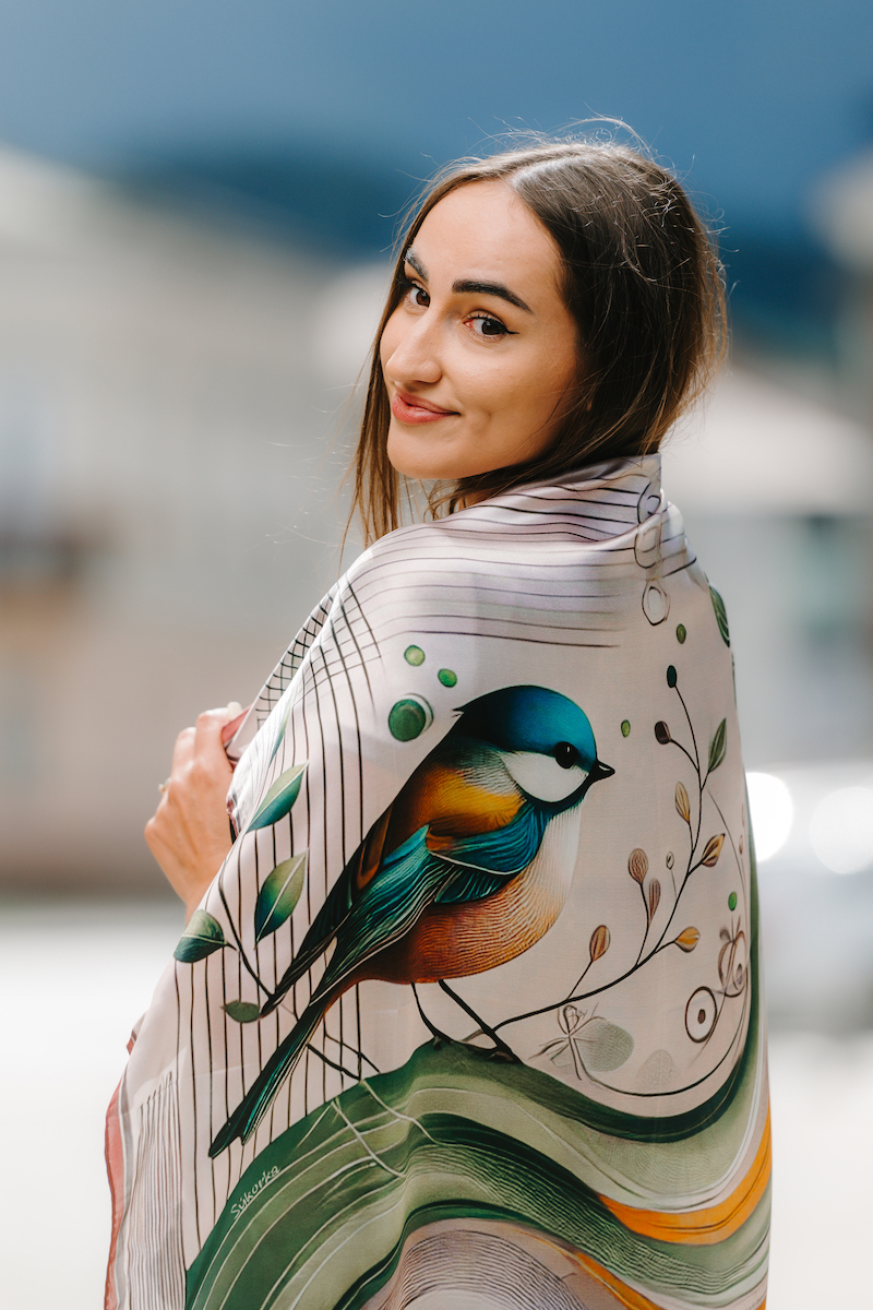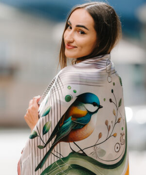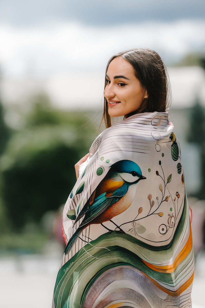Luxusná hodvábna šatka – SÝKORKA