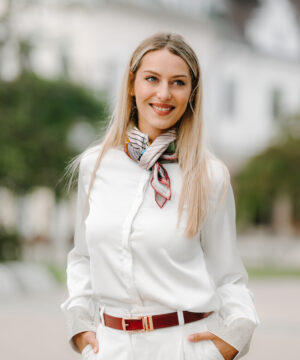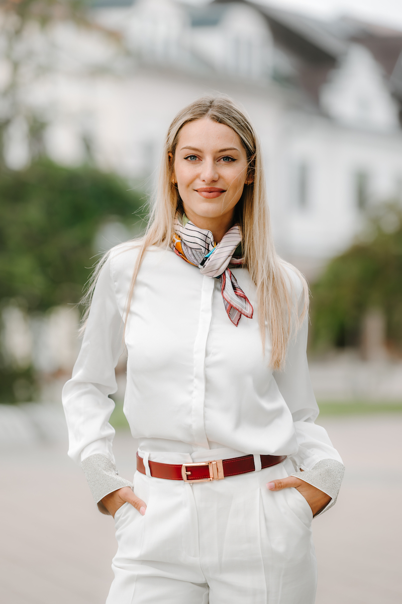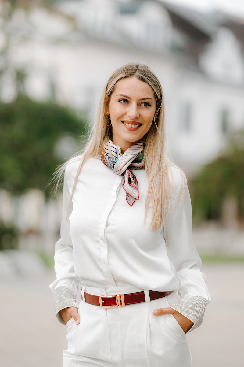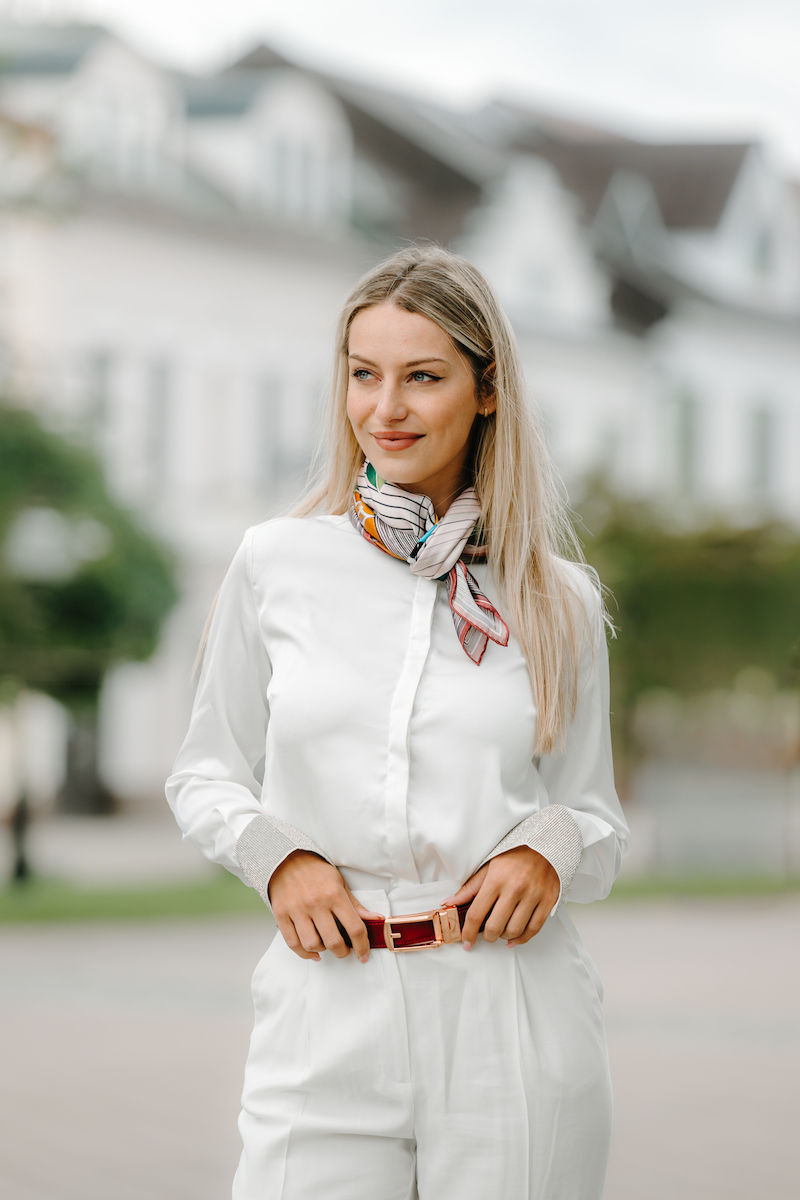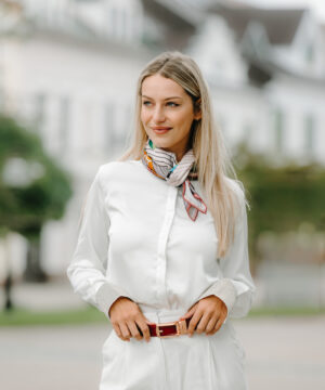 -klasická šatka okolo krku – vďaka vlastnostiam hodvábu je vhodné nosenie celoročne