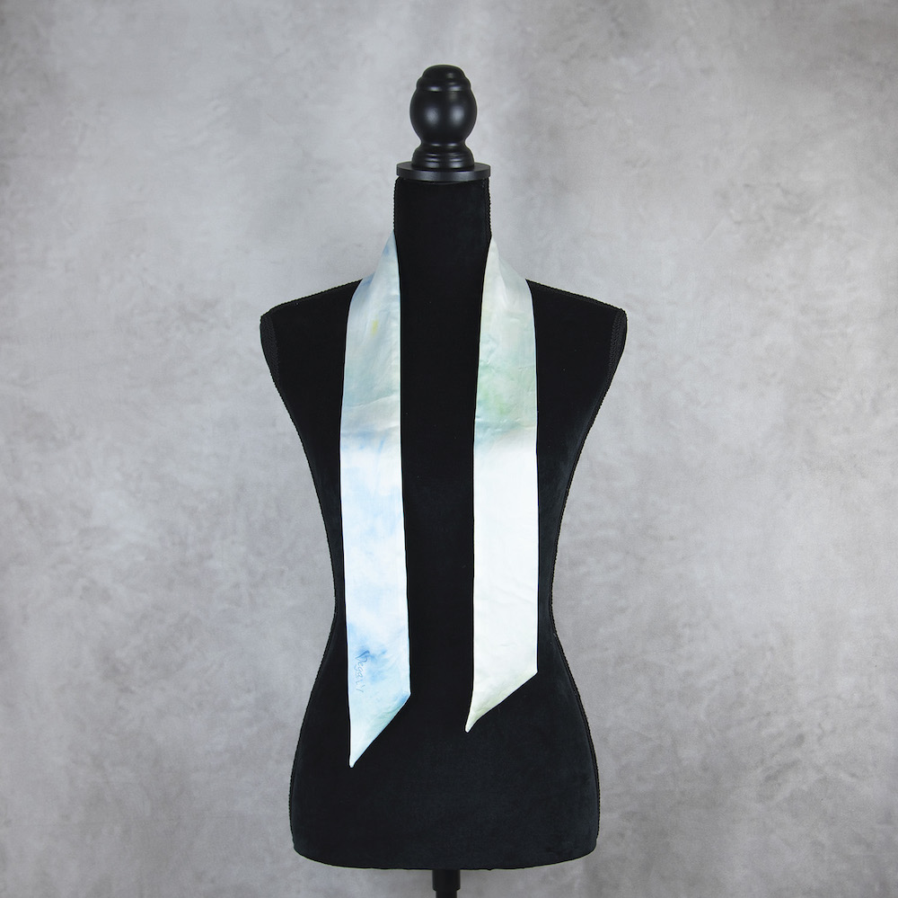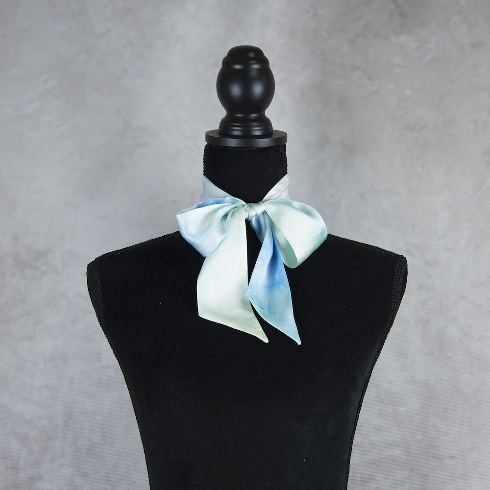 Sme tak nadšení, že vám môžeme predstaviť túto limitovanú edíciu, mimoriadne krásnych, elegantných hodvábnych šatiek. Je to perfektný módny doplnok na vnesenie osobného charakteru do vášho každodenného oblečenia. Môžete ju nosiť okolo krku, aby vás zahriala, uviazať si ju do vlasov a vytvoriť jednoduchý chvost alebo ako čelenku. Používame kvalitný prírodný hodváb, ktorý kedysi nosili kráľovské rodiny v starej Číne. Tento veľmi špeciálny materiál je vyrobený zložitou starodávnou technikou a lem je starostlivo ručne šitý profesionálnymi remeselníkmi. Je obojstranne zafarbený prirodzene, šetrný k citlivej pokožke, udržateľný a stálofarebný.