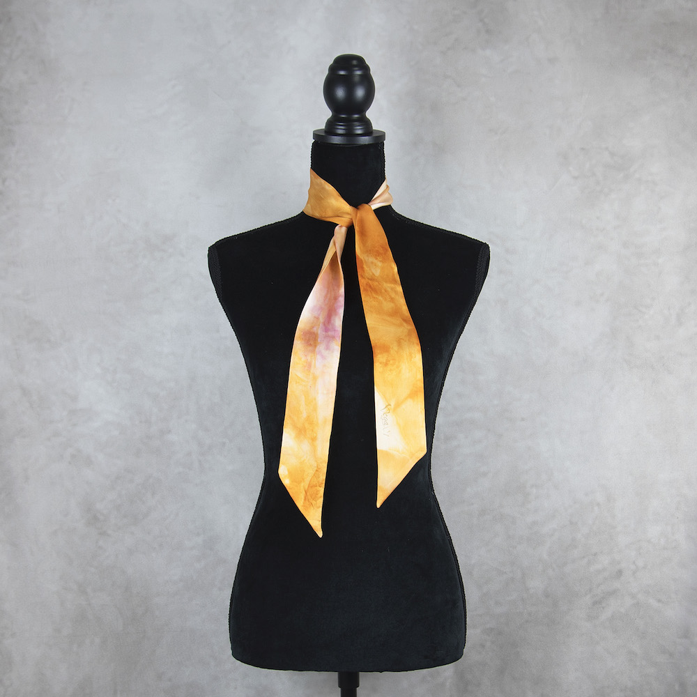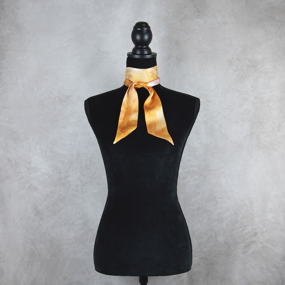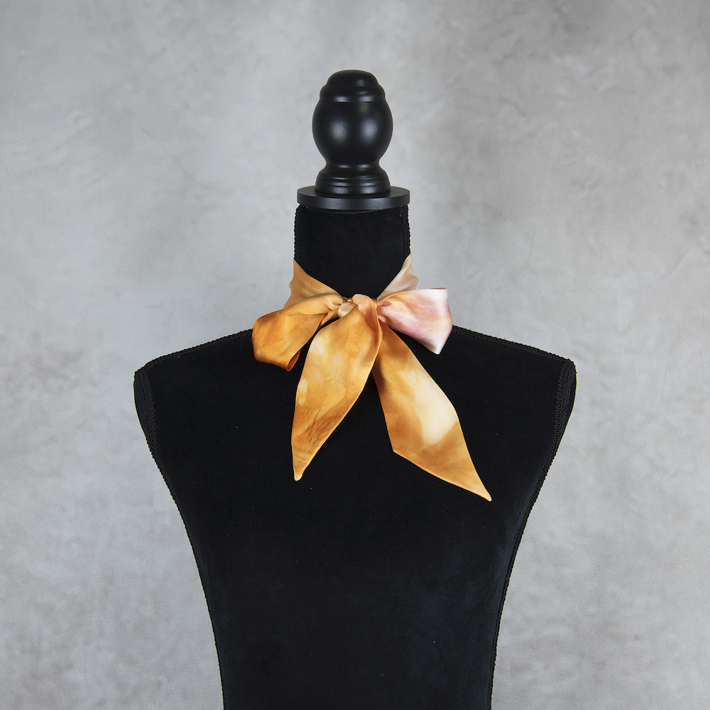 Sme tak nadšení, že vám môžeme predstaviť túto limitovanú edíciu, mimoriadne krásnych, elegantných hodvábnych šatiek. Je to perfektný módny doplnok na vnesenie osobného charakteru do vášho každodenného oblečenia. Môžete ju nosiť okolo krku, aby vás zahriala, uviazať si ju do vlasov a vytvoriť jednoduchý chvost alebo ako čelenku. Používame kvalitný prírodný hodváb, ktorý kedysi nosili kráľovské rodiny v starej Číne. Tento veľmi špeciálny materiál je vyrobený zložitou starodávnou technikou a lem je starostlivo ručne šitý profesionálnymi remeselníkmi. Je obojstranne zafarbený prirodzene, šetrný k citlivej pokožke, udržateľný a stálofarebný.