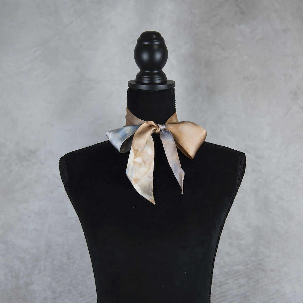 Sme tak nadšení, že vám môžeme predstaviť túto limitovanú edíciu, mimoriadne krásnych, elegantných hodvábnych šatiek. Je to perfektný módny doplnok na vnesenie osobného charakteru do vášho každodenného oblečenia. Môžete ju nosiť okolo krku, aby vás zahriala, uviazať si ju do vlasov a vytvoriť jednoduchý chvost alebo ako čelenku. Používame kvalitný prírodný hodváb, ktorý kedysi nosili kráľovské rodiny v starej Číne. Tento veľmi špeciálny materiál je vyrobený zložitou starodávnou technikou a lem je starostlivo ručne šitý profesionálnymi remeselníkmi. Je obojstranne zafarbený prirodzene, šetrný k citlivej pokožke, udržateľný a stálofarebný.