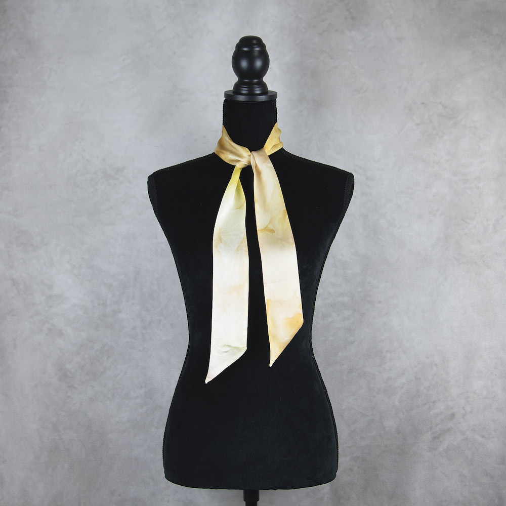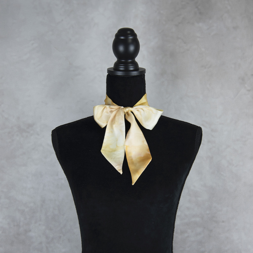 Sme tak nadšení, že vám môžeme predstaviť túto limitovanú edíciu, mimoriadne krásnych, elegantných hodvábnych šatiek. Je to perfektný módny doplnok na vnesenie osobného charakteru do vášho každodenného oblečenia. Môžete ju nosiť okolo krku, aby vás zahriala, uviazať si ju do vlasov a vytvoriť jednoduchý chvost alebo ako čelenku. Používame kvalitný prírodný hodváb, ktorý kedysi nosili kráľovské rodiny v starej Číne. Tento veľmi špeciálny materiál je vyrobený zložitou starodávnou technikou a lem je starostlivo ručne šitý profesionálnymi remeselníkmi. Je obojstranne zafarbený prirodzene, šetrný k citlivej pokožke, udržateľný a stálofarebný.
