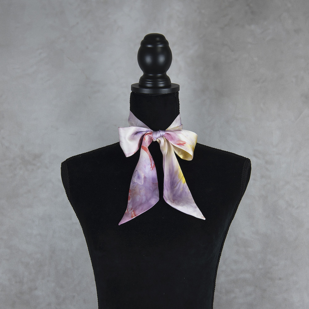Sme tak nadšení, že vám môžeme predstaviť túto limitovanú edíciu, mimoriadne krásnych, elegantných hodvábnych šatiek. Je to perfektný módny doplnok na vnesenie osobného charakteru do vášho každodenného oblečenia. Môžete ju nosiť okolo krku, aby vás zahriala, uviazať si ju do vlasov a vytvoriť jednoduchý chvost alebo ako čelenku. Používame kvalitný prírodný hodváb, ktorý kedysi nosili kráľovské rodiny v starej Číne. Tento veľmi špeciálny materiál je vyrobený zložitou starodávnou technikou a lem je starostlivo ručne šitý profesionálnymi remeselníkmi. Je obojstranne zafarbený prirodzene, šetrný k citlivej pokožke, udržateľný a stálofarebný.
