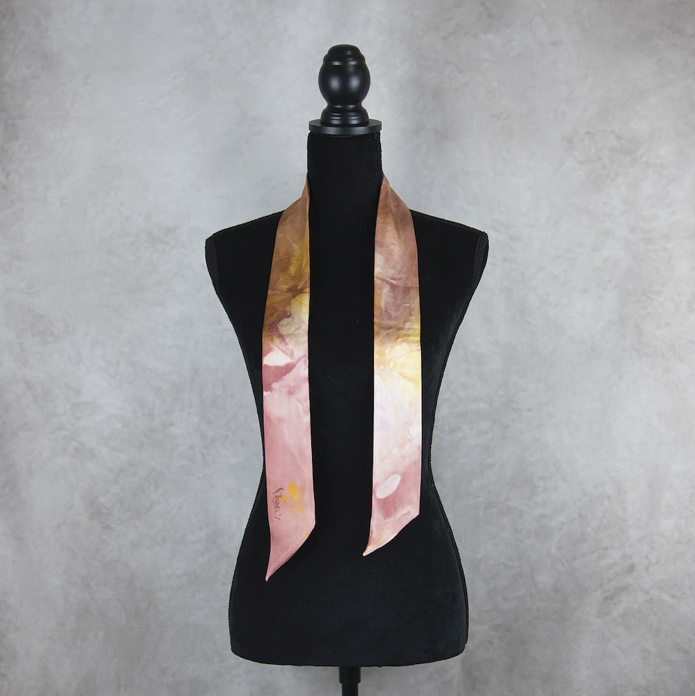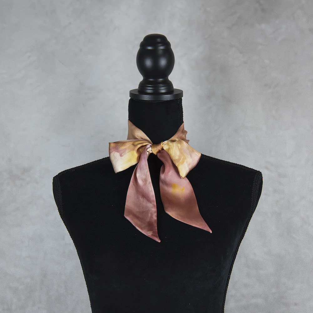 Sme tak nadšení, že vám môžeme predstaviť túto limitovanú edíciu, mimoriadne krásnych, elegantných hodvábnych šatiek. Je to perfektný módny doplnok na vnesenie osobného charakteru do vášho každodenného oblečenia. Môžete ju nosiť okolo krku, aby vás zahriala, uviazať si ju do vlasov a vytvoriť jednoduchý chvost alebo ako čelenku. Používame kvalitný prírodný hodváb, ktorý kedysi nosili kráľovské rodiny v starej Číne. Tento veľmi špeciálny materiál je vyrobený zložitou starodávnou technikou a lem je starostlivo ručne šitý profesionálnymi remeselníkmi. Je obojstranne zafarbený prirodzene, šetrný k citlivej pokožke, udržateľný a stálofarebný.