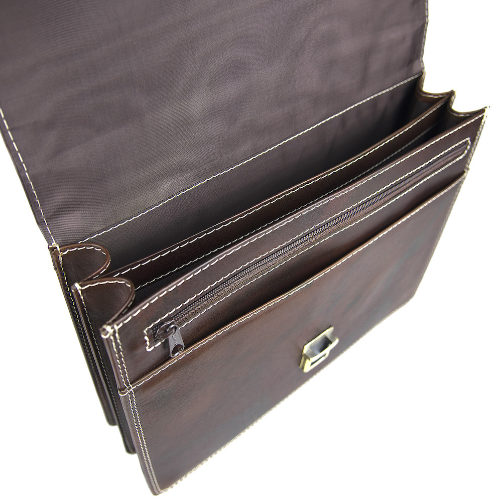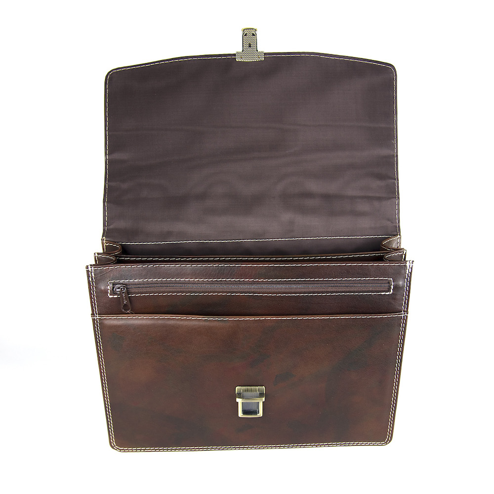 Používame len pravú hovädziu kožu z overených zdrojov. Tá sa postupne prispôsobuje svojmu majiteľovi, získava prirodzenú patinu a s časom sa stáva ešte krajšou. Každý detail – od šitia, cez zapínanie, až po vnútorné priečinky – je navrhnutý tak, aby spĺňal potreby moderného profesionála, ktorý si potrpí na kvalitu a spoľahlivosť.