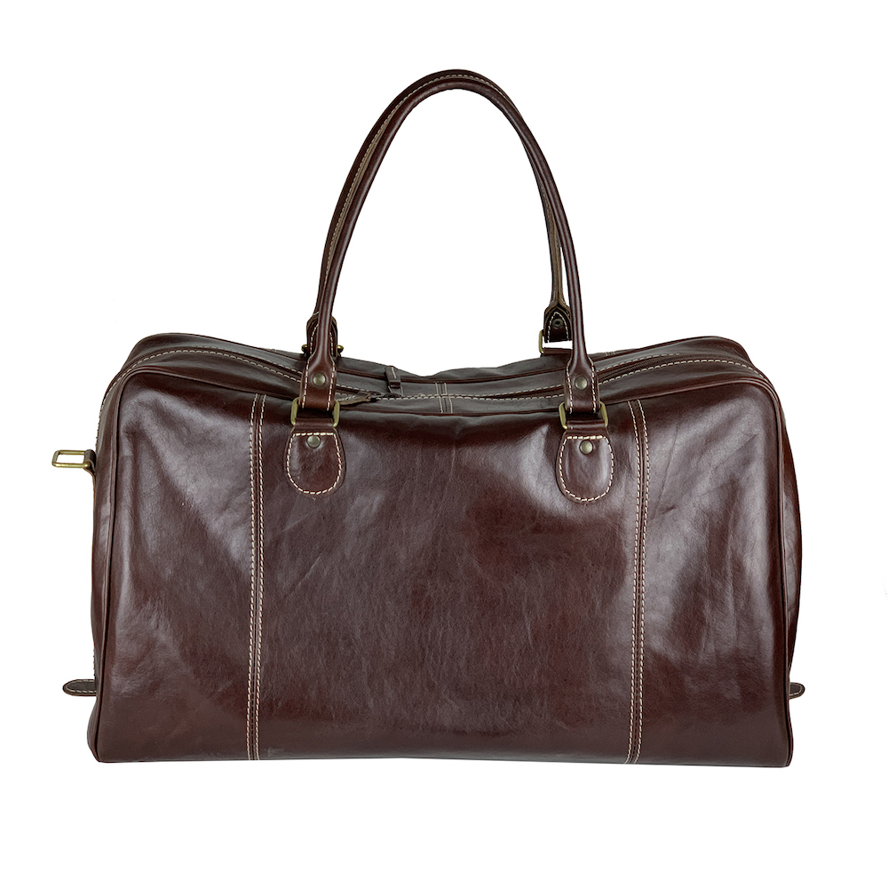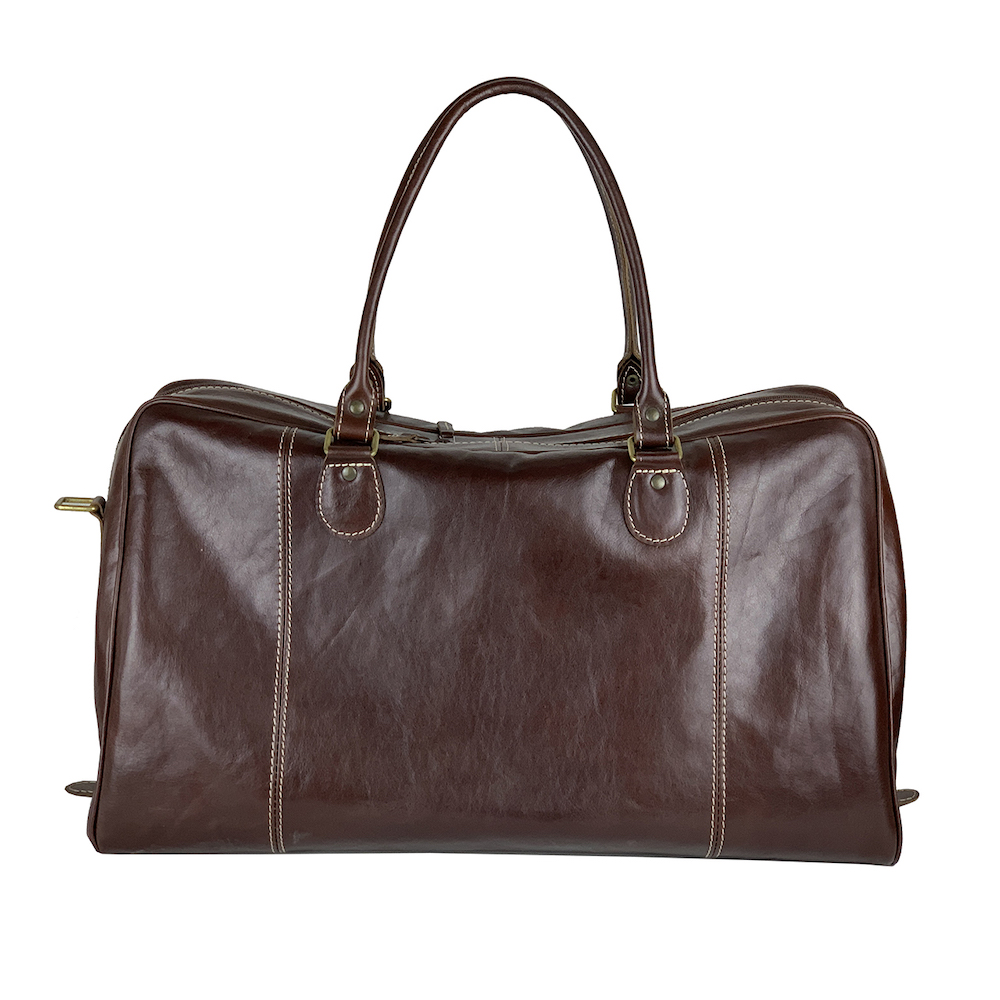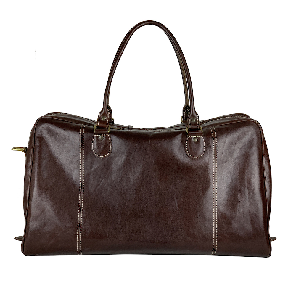 Kožená cestovná kabela č.8686 v tmavo hnedej farbe vyrobená z pravej talianskej kože. Vyznačuje sa vynikajúcou kvalitou, vysokou odolnosťou a trvácnosťou. Kabela má vysokú nosnosť a je ľahká. Disponuje bohatým vnútorným vybavením a umožňuje bezproblémové cestovanie. Pre dobré používanie má držadlá na nosenie v rukách a taktiež kožený nastaviteľný popruh cez rameno. Kožená cestovná taška je praktickým a elegantným pomocníkom na cesty aj denné nosenie. Vzhľadom k elegancii a nízkej hmotnosti môžete túto koženú kabelu nosiť aj cez rameno alebo aj ako príručnú batožinu.