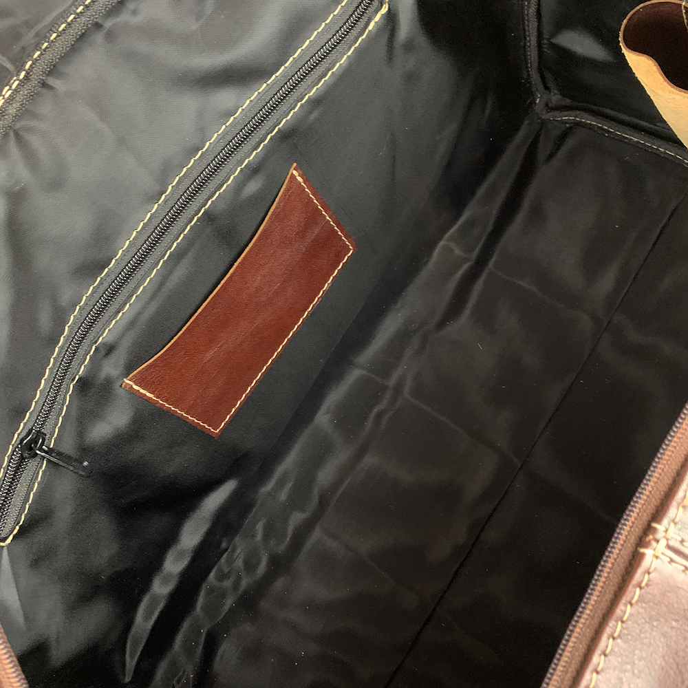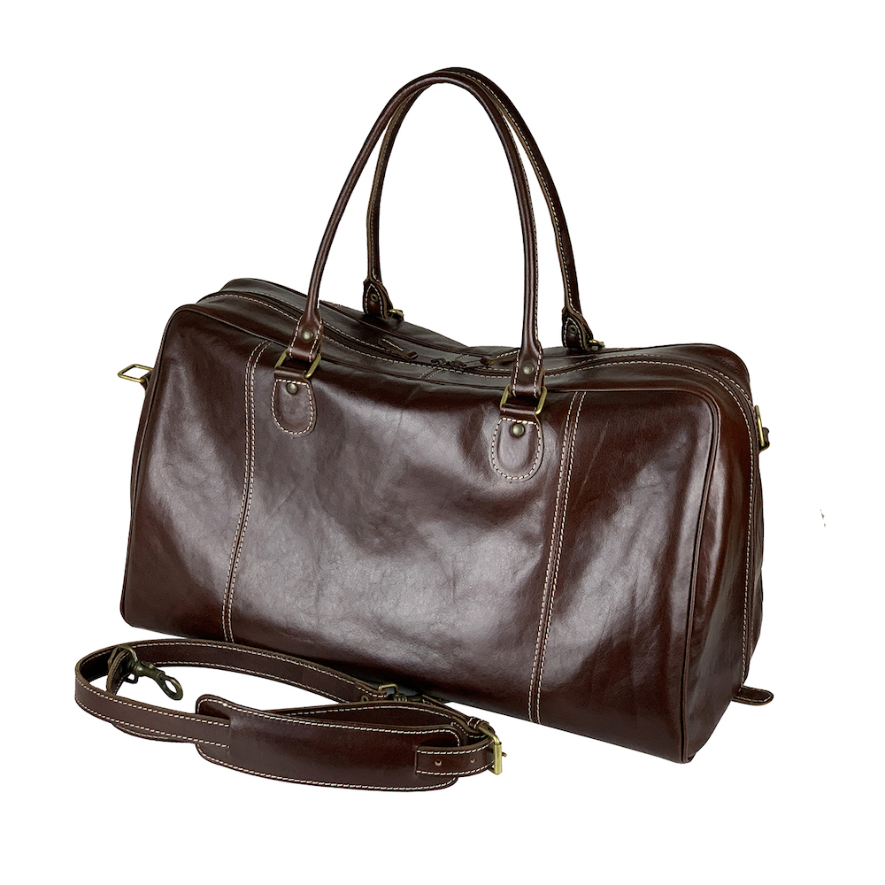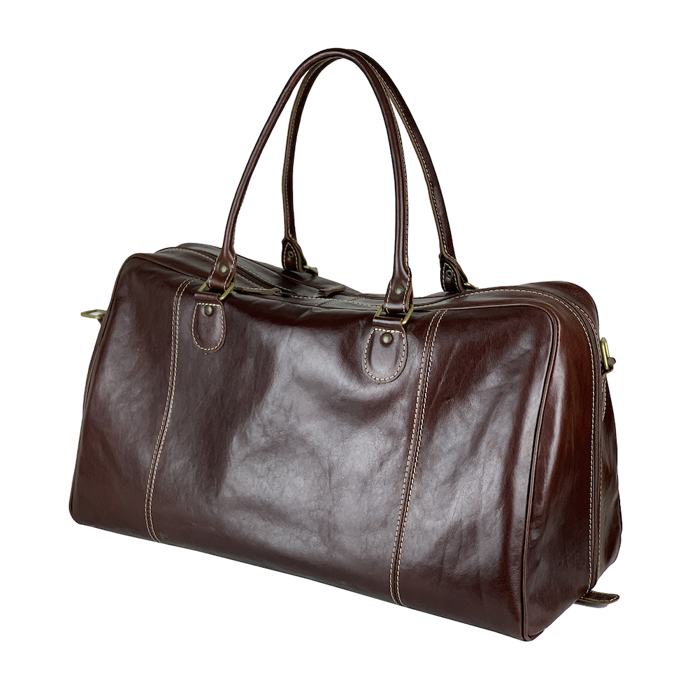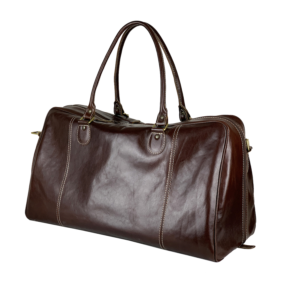 Kožená cestovná kabela č.8686 v tmavo hnedej farbe vyrobená z pravej talianskej kože. Vyznačuje sa vynikajúcou kvalitou, vysokou odolnosťou a trvácnosťou. Kabela má vysokú nosnosť a je ľahká. Disponuje bohatým vnútorným vybavením a umožňuje bezproblémové cestovanie. Pre dobré používanie má držadlá na nosenie v rukách a taktiež kožený nastaviteľný popruh cez rameno. Kožená cestovná taška je praktickým a elegantným pomocníkom na cesty aj denné nosenie. Vzhľadom k elegancii a nízkej hmotnosti môžete túto koženú kabelu nosiť aj cez rameno alebo aj ako príručnú batožinu.