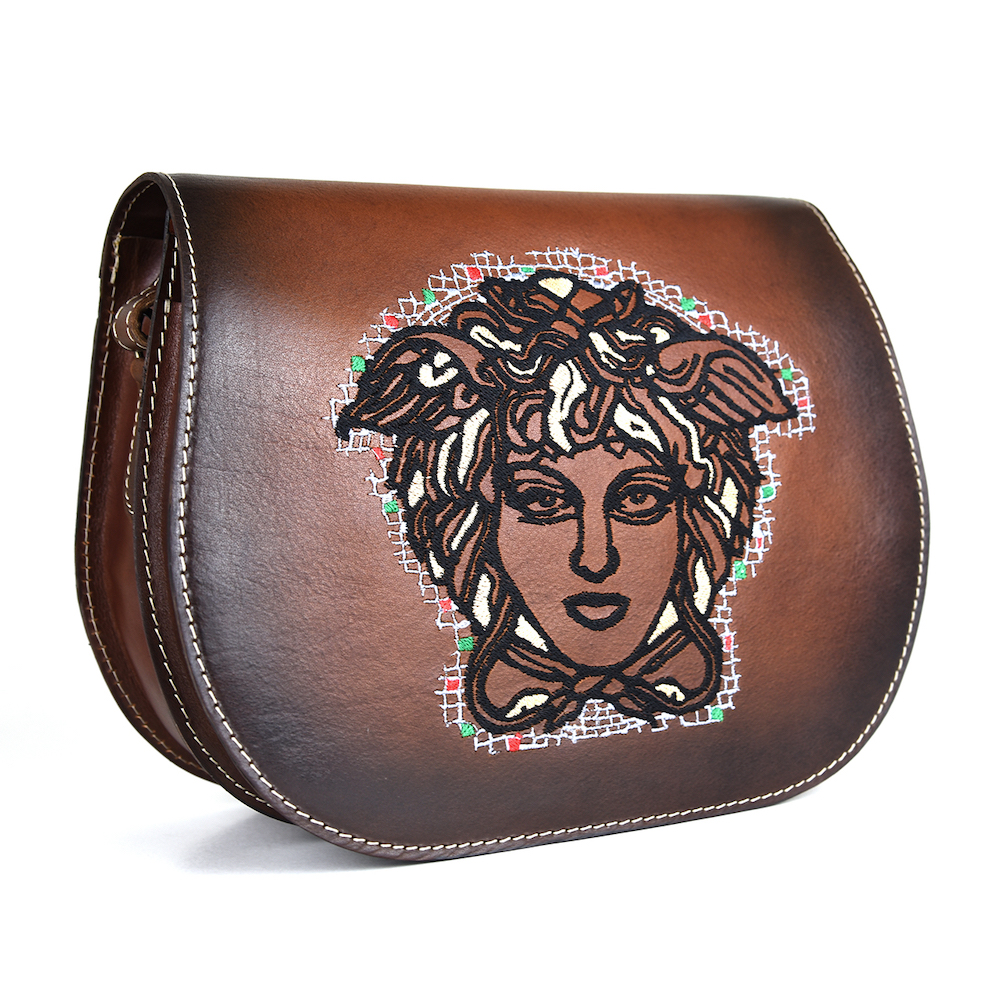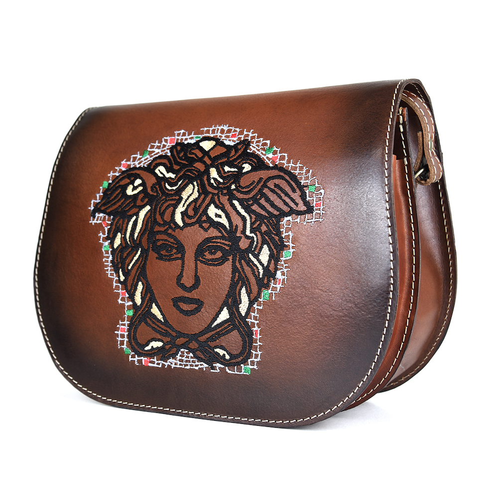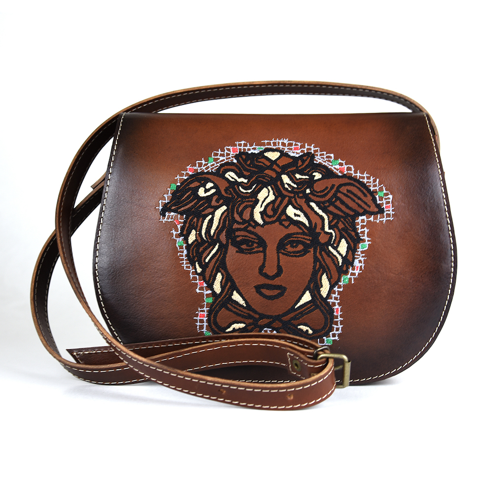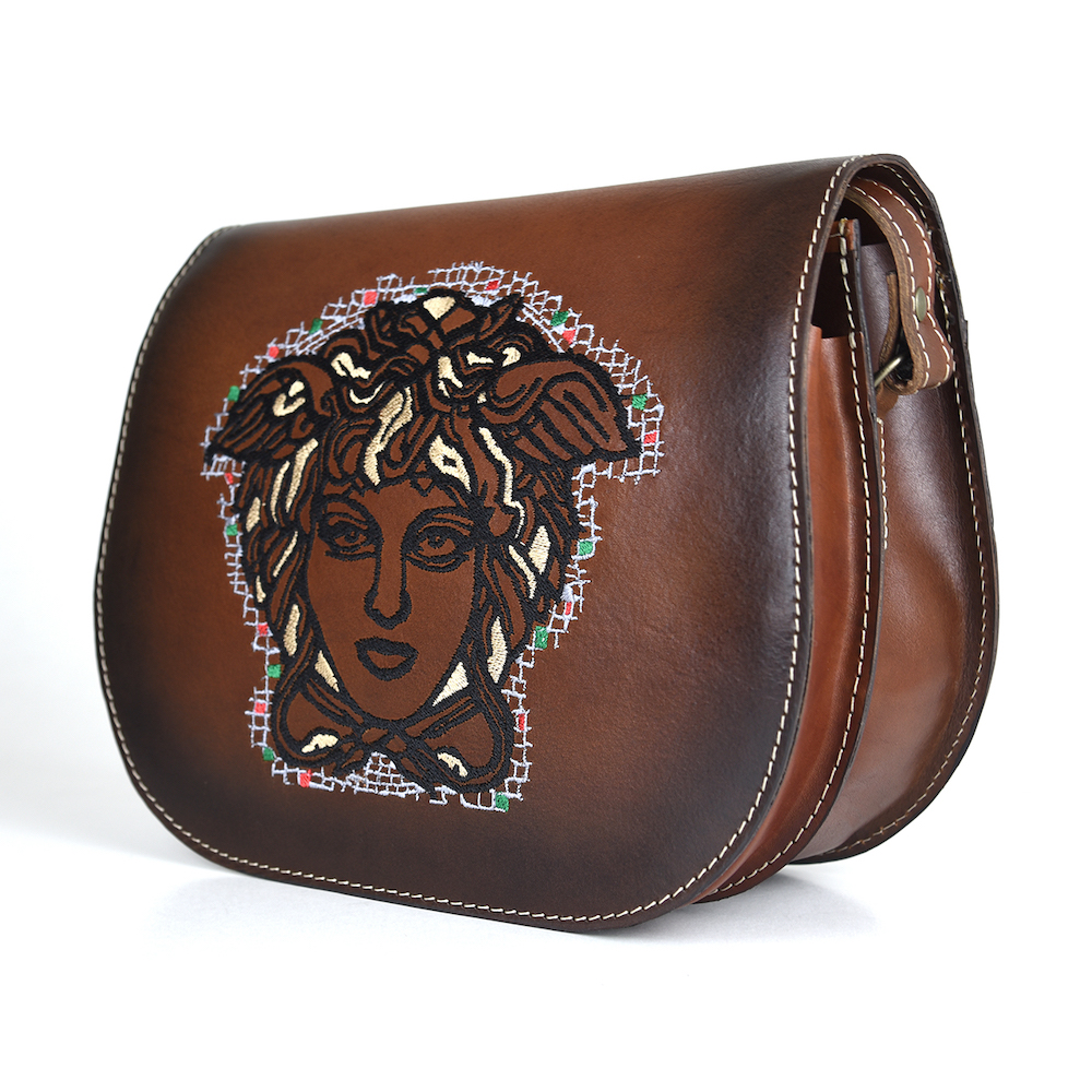 Kožená kabelka s výšivkou je vyrobená z prírodnej triesločinenej usne z ručným tampónovaním a následným tieňovaním krajov s použitím talianskej koželužskej technológie. Následné je ošetrená priehľadným lakom, ktorý chráni materiál pred bežným mechanickým poškodením a premočením. Výsledkom je nádherná moderná kožená kabelka.