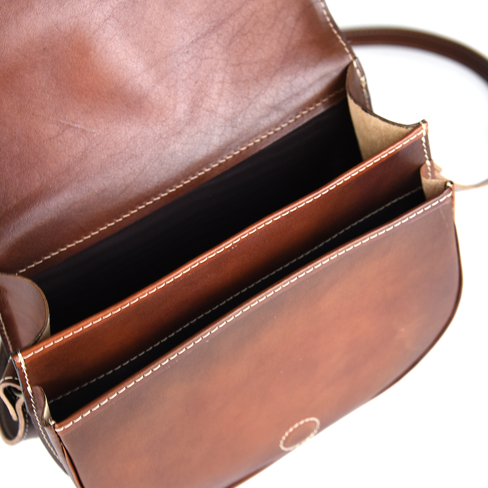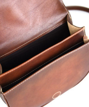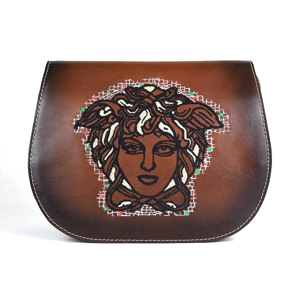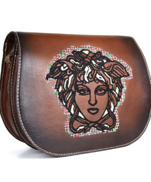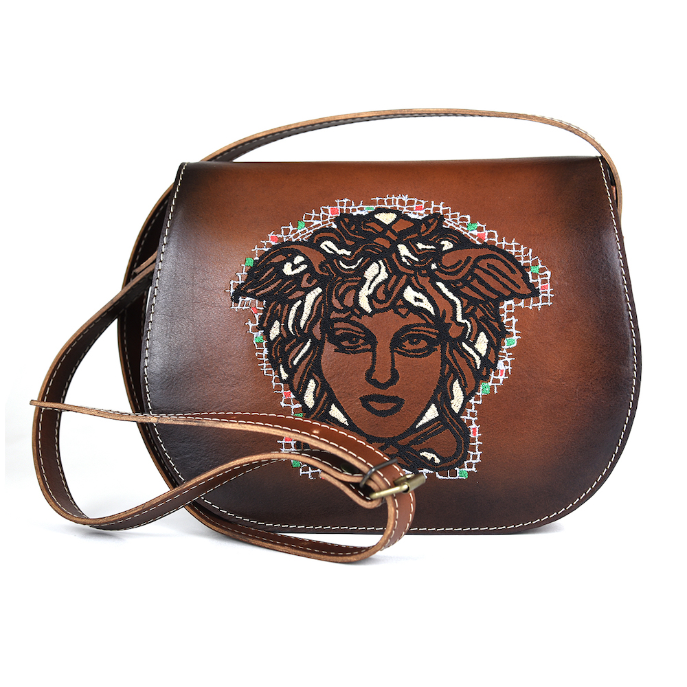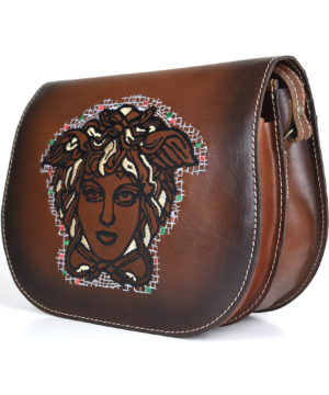 Kožená kabelka s výšivkou je vyrobená z prírodnej triesločinenej usne z ručným tampónovaním a následným tieňovaním krajov s použitím talianskej koželužskej technológie. Následné je ošetrená priehľadným lakom, ktorý chráni materiál pred bežným mechanickým poškodením a premočením. Výsledkom je nádherná moderná kožená kabelka.