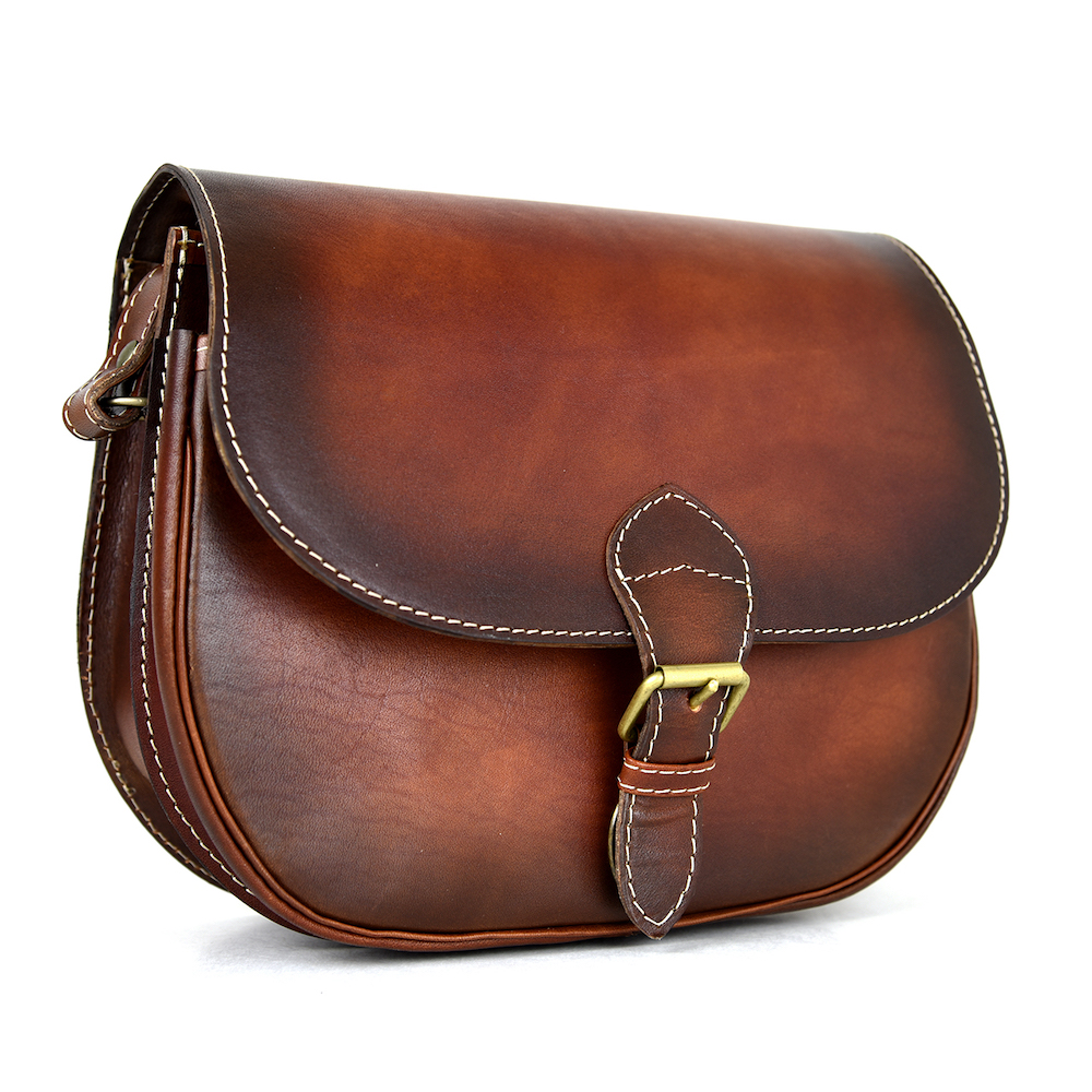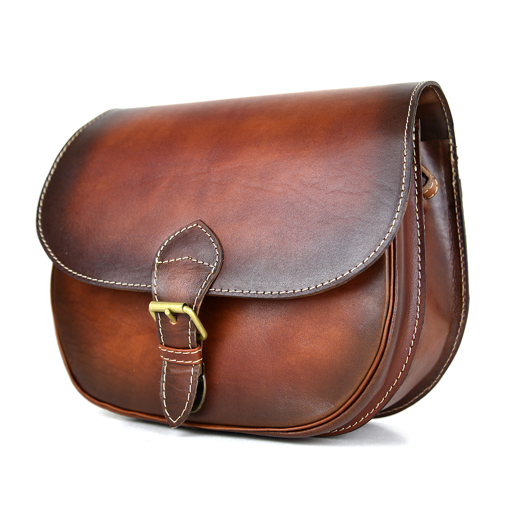Unikátna Kožená kabelka 7403, ručne tieňovaná. Kabelka je vyrobená z prírodnej triesločinenej usne z ručným natieraním a následným tieňovaním krajov. Následné je ošetrená priehľadným lakom, ktorý chráni materiál pred poškodením a premočením. Výsledkom je nádherná kožená kabelka. Vycibrený taliansky vkus a zmysel pre detail a štýl sa spája s módnym doplnkom pre každú príležitosť. Kožené kabelky sú vhodným módnym doplnkom pre každú príležitosť. Vo vnútri kabelky sa nachádzajú vrecká na mobil a iné drobnosti.