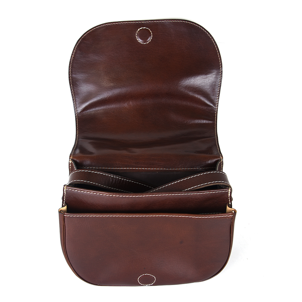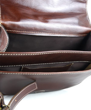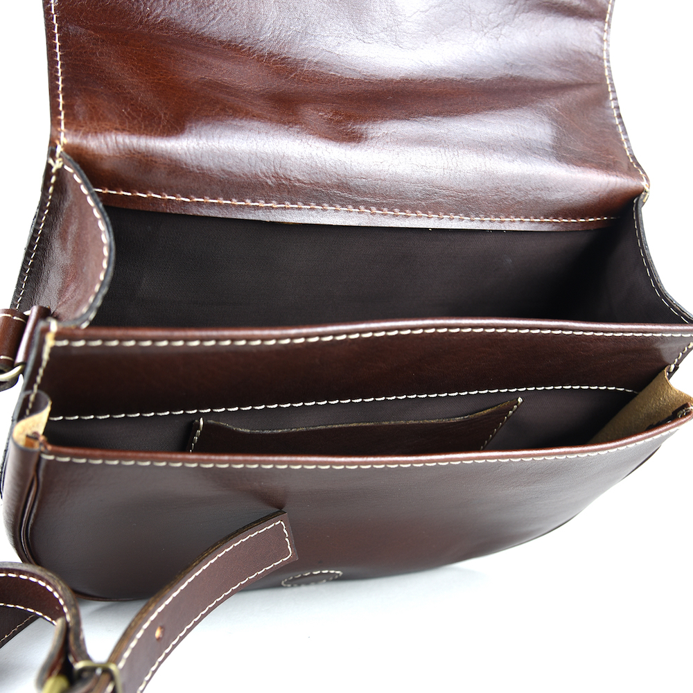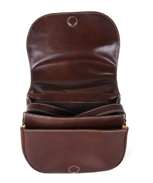 Luxusná kožená lovecká kabelka, skrytý magnet, hnedá farba. Kabelka je urobená na spôsob loveckej kapsy. Kabelka je vyrobená z prírodnej triesločinenej usne. Následné je ošetrená priehľadným lakom, ktorý chráni materiál pred poškodením a premočením. Výsledkom je nádherná kožená kabelka. Vycibrený taliansky vkus a zmysel pre detail a štýl sa spája s módnym doplnkom pre každú príležitosť. Kožené kabelky sú vhodným módnym doplnkom pre každú príležitosť. Vo vnútri kabelky sa nachádzajú vrecká na mobil a iné drobnosti.