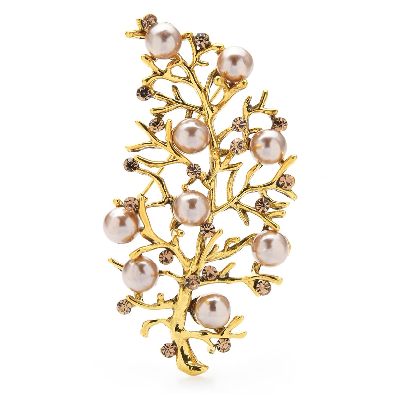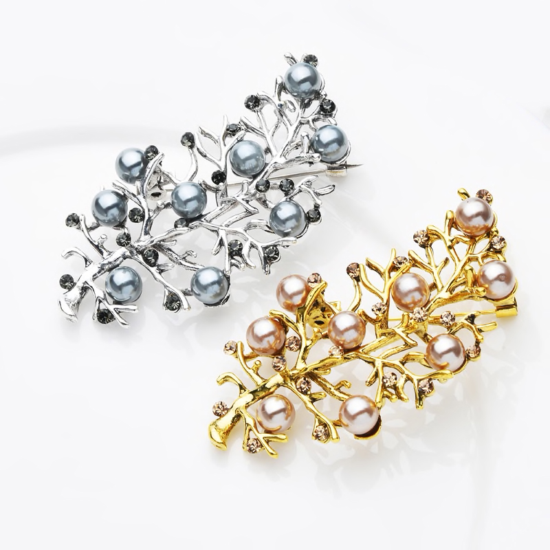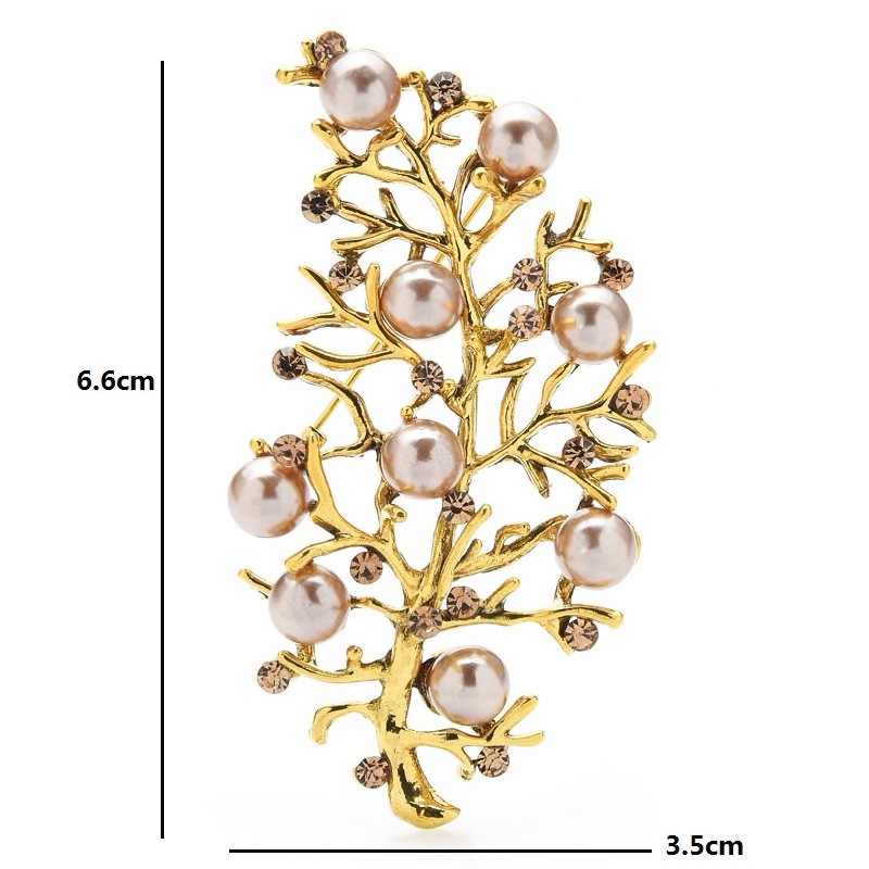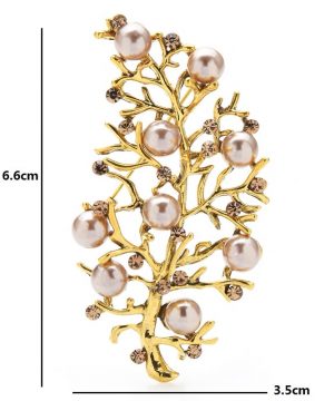 Luxusná ozdobná brošňa v tvare listu stromu s kryštálikmi