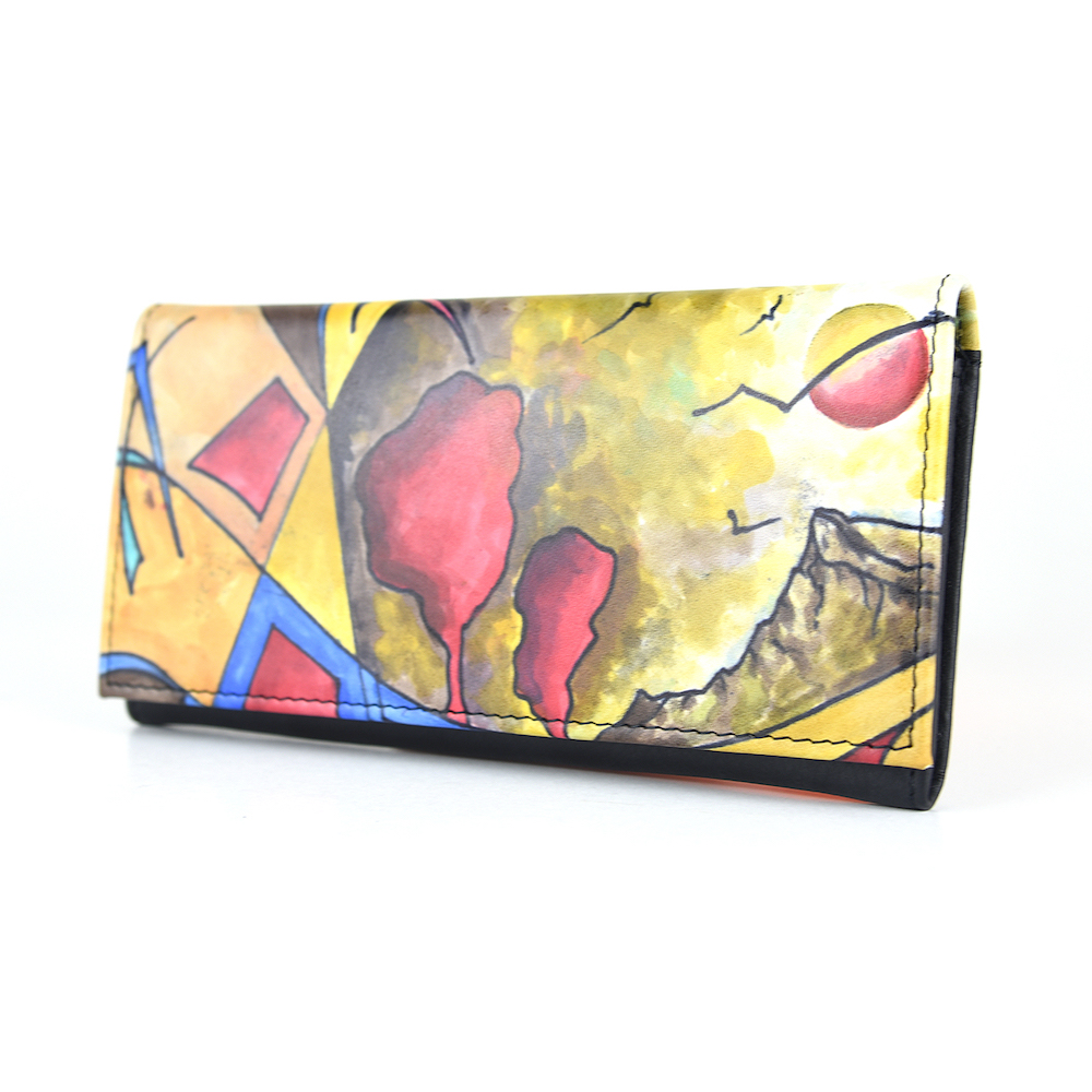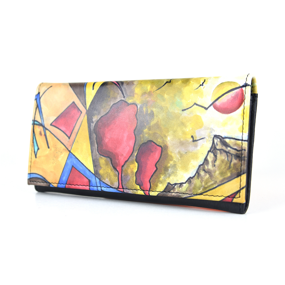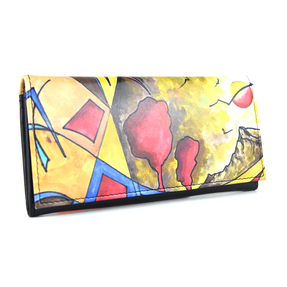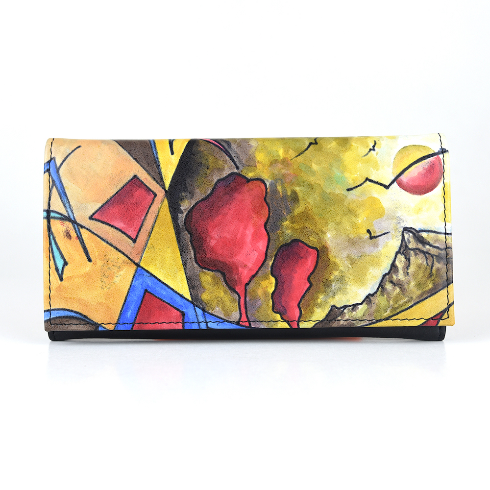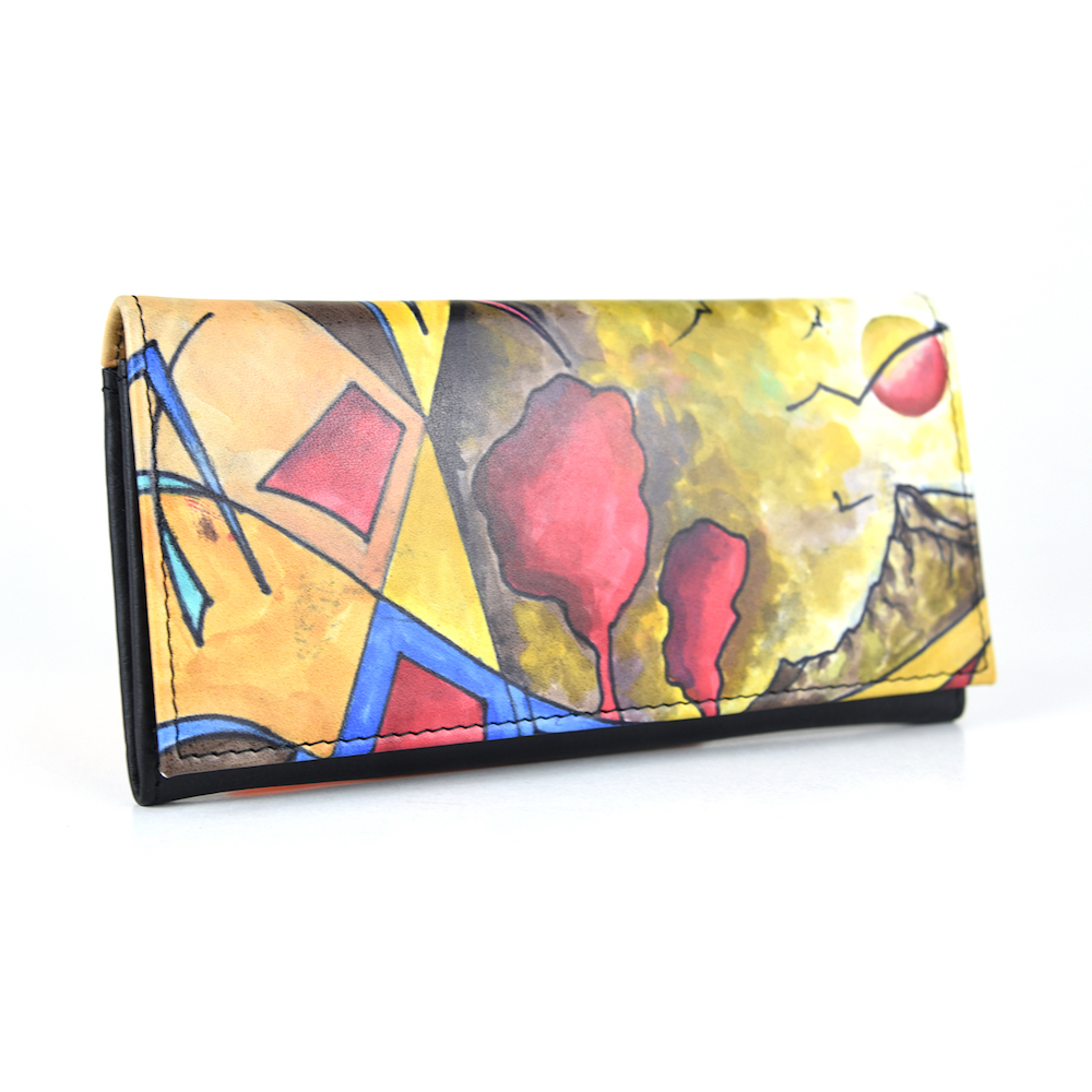 Elegantná a originálna ručne maľovaná peňaženka vyrobená z pravej talianskej kože. Existuje len jeden kus. Každý jeden kus ručne maľovaných výrobkov je umelecké dielo. Peňaženka je neopakovateľný originál s nádhernou maľbou. Spojenie unikátnej technológie s výtvarním umením vzniká unikátne a nenapodobiteľné dielo v podobe maľovanej koženej peňaženky s originálnym motívom.