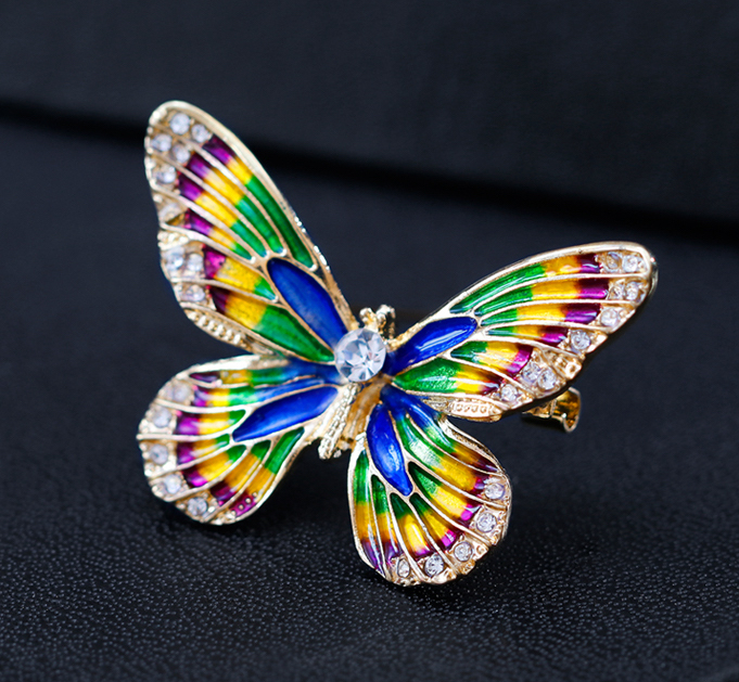 Luxusná smaltová brošňa v tvare farebného motýľa s kryštálikmi