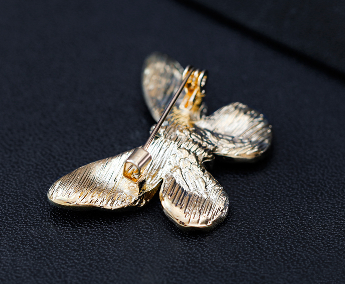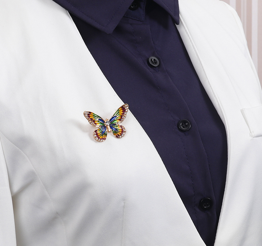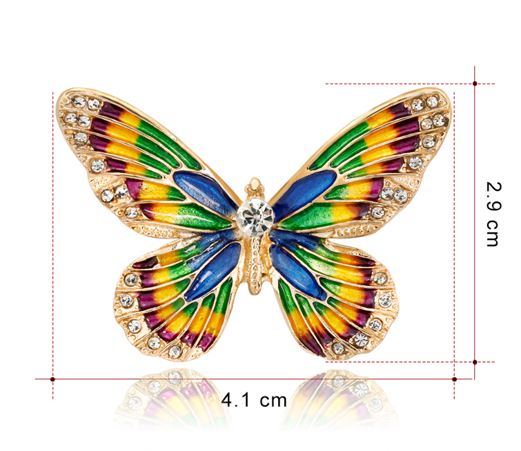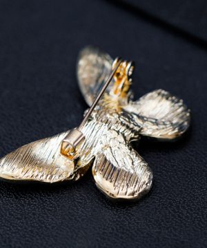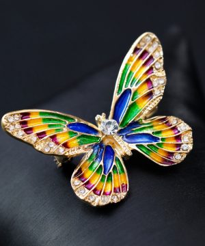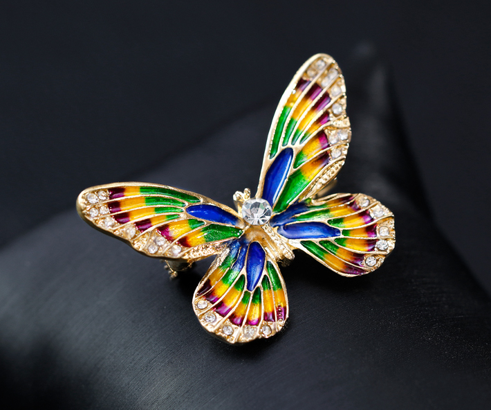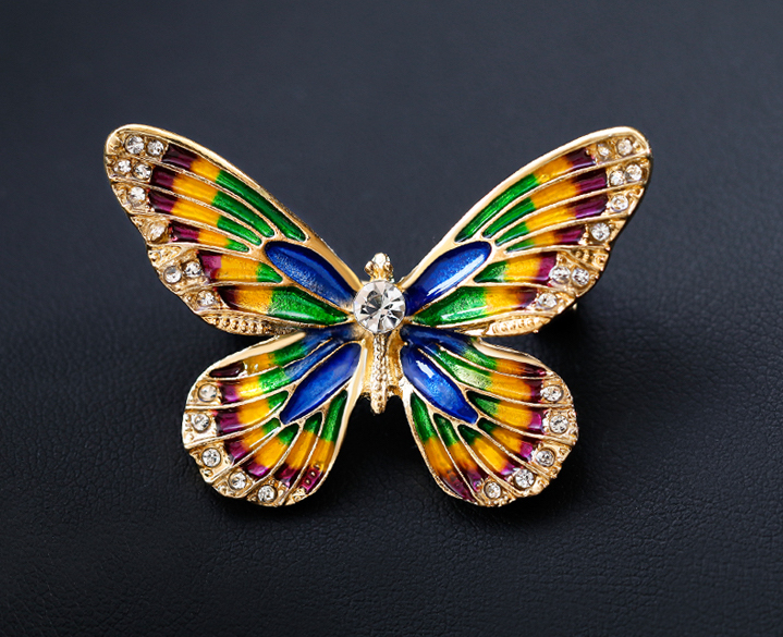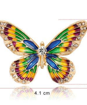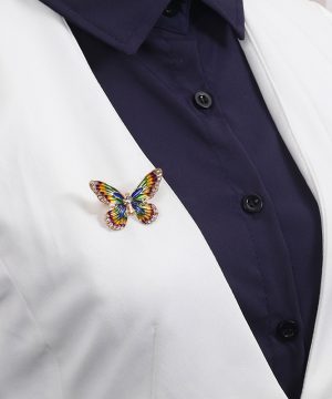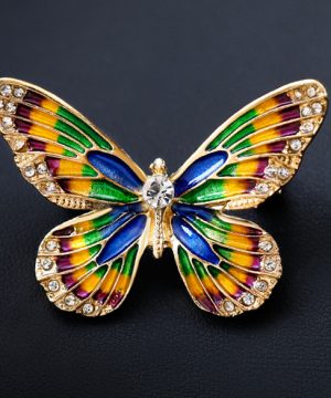 Luxusná smaltová brošňa v tvare farebného motýľa s kryštálikmi je jedna z najluxusnejších brošni z nášho sortimentu. Táto brošňa vás zaujme svojou jedinečnosťou v tvare farebného motýľa, ktorý je zdobený miniatúrnymi kryštálikmi. Brošňa je vyrobená z kvalitných materiálov, s povrchovou upravou so smaltom. Je dostatočne veľká na to aby vyzdvihla Vašu ženskosť a eleganciu. Brošňa je nádhernou ozdobou pre Vaše oblečenie alebo šatku. Ozdobte si svoje večerné šaty alebo svoju šatku a šál luxusnou ozdobou s ktorou budete neprehliadnuteľná. Brošňu si môžete pripnúť aj na svoje módne doplnky, akými sú napríklad: kabelka, taška a pod. Brošňu si pripnete pomocou špendlíka, ktorý je na zadnej strane ozdoby. Vďaka povrchovej úprave si táto luxusná brošňa zachová dlhotrvajúci lesk a jas.