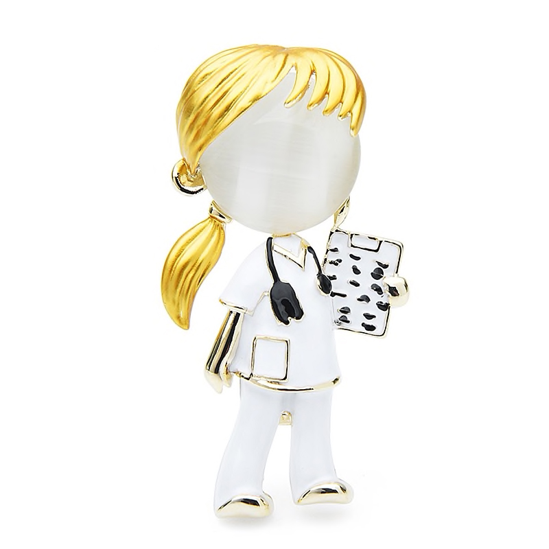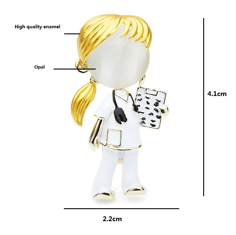 Luxusná smaltovaná brošňa v podobe doktorky / lekárky