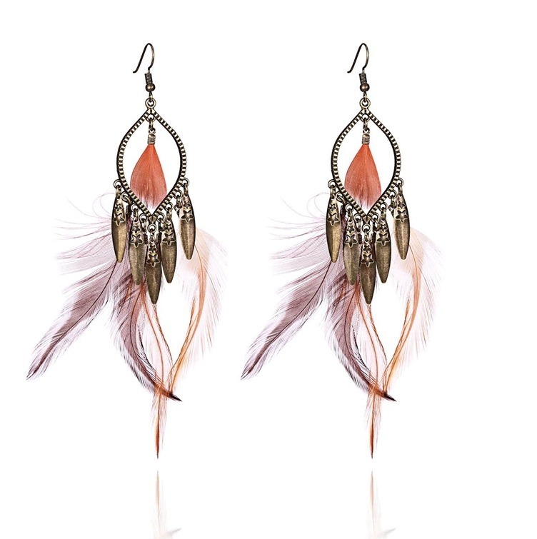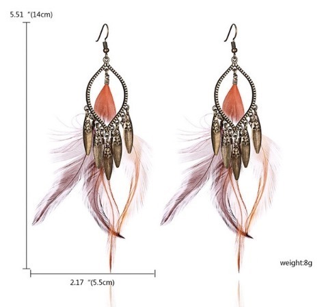 Tieto luxusné a elegantné náušnice s pierkom Vás uchvátia svojim elegantným dizajnom, ktorý z nich robí prekrásny doplnok pre každú ženu. Náušnice sú v bronzovej farbe a sú vhodné na formálne udalosti aj na bežné nosenie. Luxusný a kvalitný materiál, dodáva náušniciam prekrásny lesk a žiarivosť. Sú vyrobené z kvalitných zliatin materiálov. Potešte svoju milú týmto romantickým darčekom.