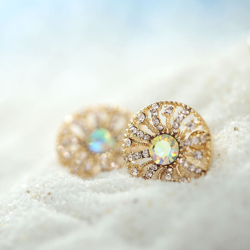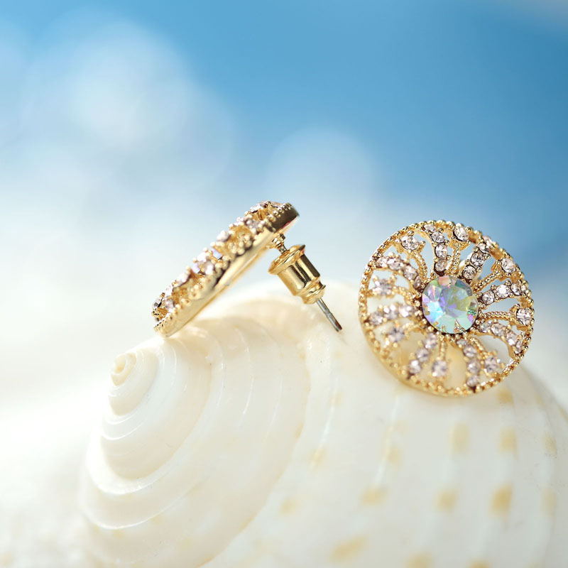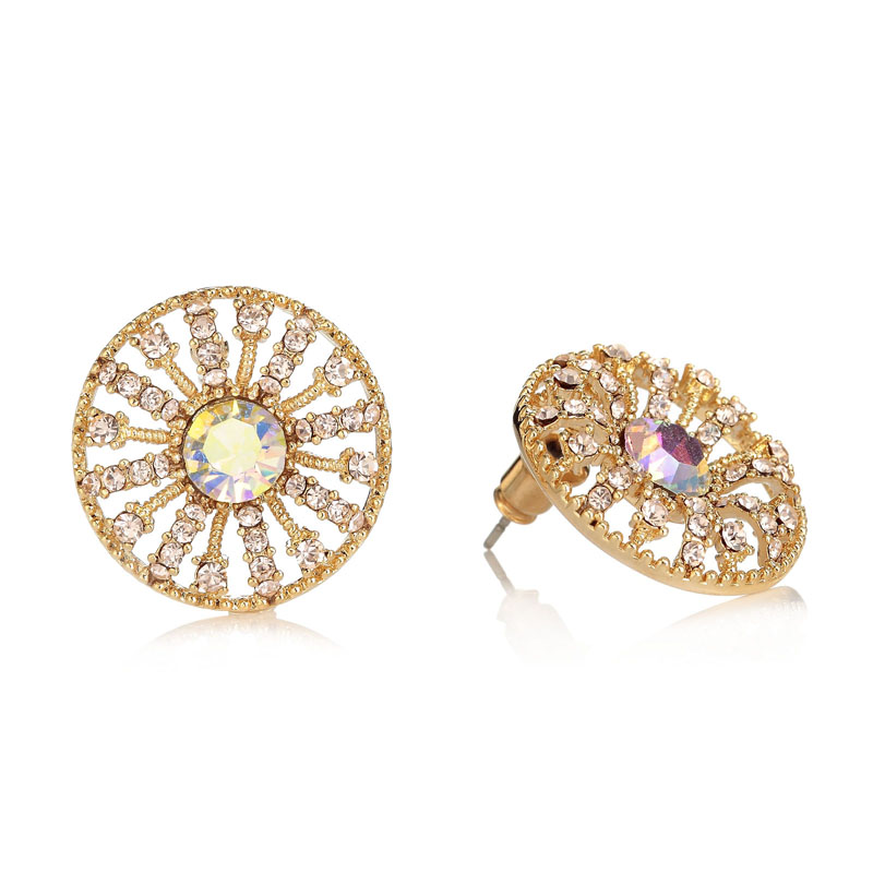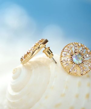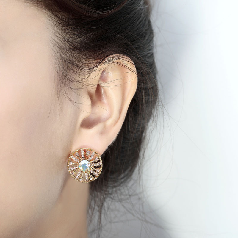 Luxusné náušnice v tvare kryštálového kruhu v zlatej farbe. Tieto krásne a elegantné náušnice Vás uchvátia svojim žiarivým dizajnom. Náušnice obsahujú žiarivé kvalitné kryštály, ktoré z nich robia prekrásny doplnok pre každú ženu. Náušnice sú v zlatej farbe a sú vhodné na formálne aj neformálne udalostí. Luxusný a kvalitný materiál, dodáva náušniciam prekrásny lesk a žiarivosť. Sú vyrobené z kvalitných zliatin materiálov. Potešte svoju milú týmto romantickým darčekom.