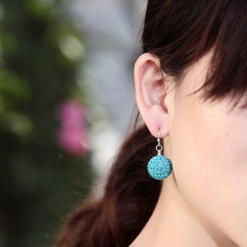 Luxusné náušnice v tvare kryštálových guličiek v slabo modrej farbe. Tieto krásne náušnice Vás uchvátia svojim luxusným tvarom guličiek s trblietavými kryštálmi. Náušnice obsahujú žiarivé kryštály a sú vhodné na formálne aj neformálne udalostí. Tieto luxusné náušnice zdobia krásne farebné kryštály. Luxusný a kvalitný materiál, dodáva náušniciam prekrásny lesk a žiarivosť. Sú vyrobené z kvalitných zliatin materiálov. Potešte svoju milú týmto romantickým darčekom.